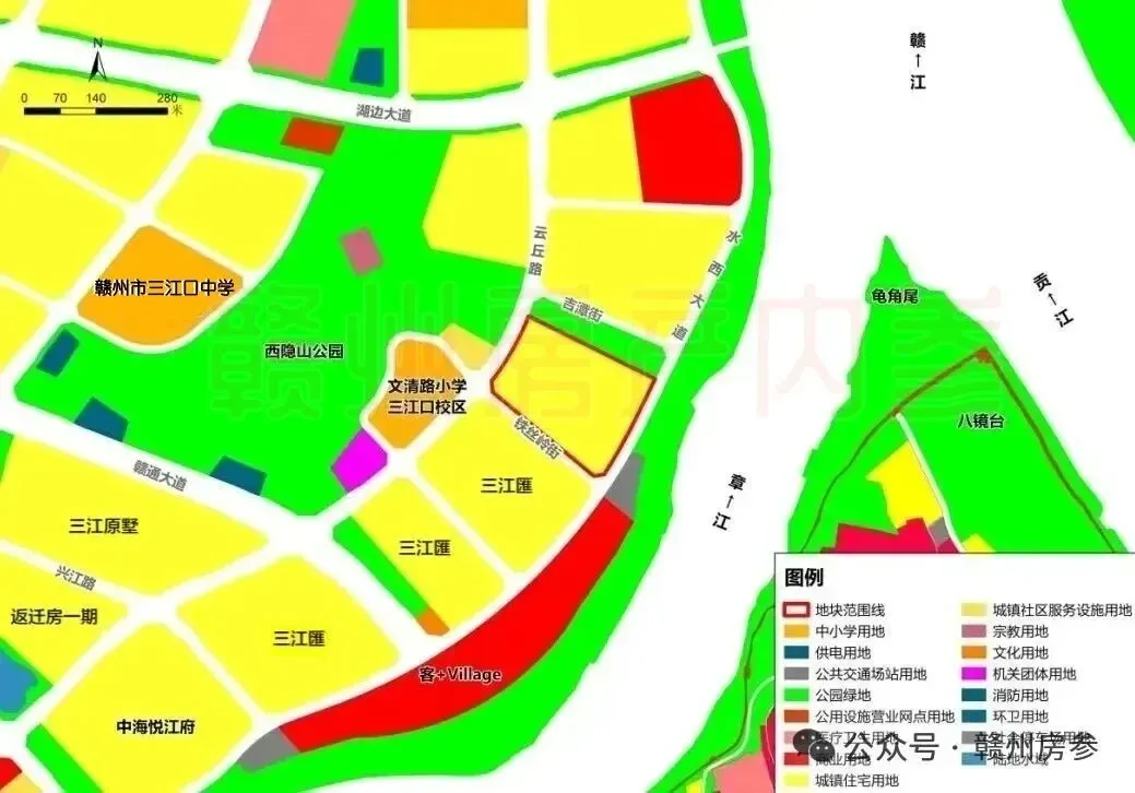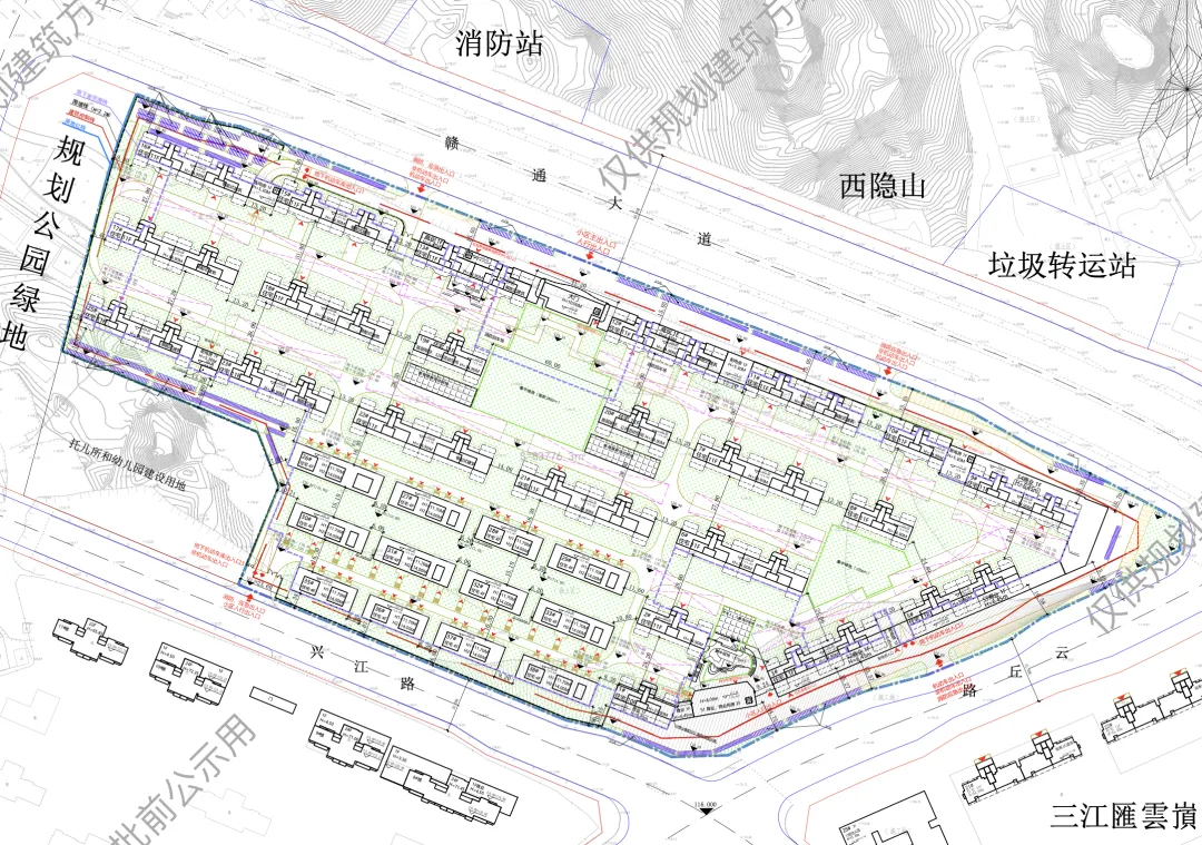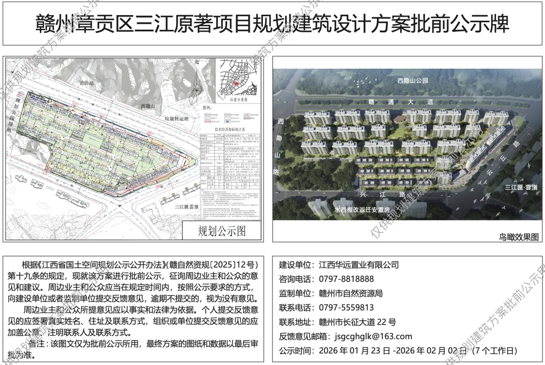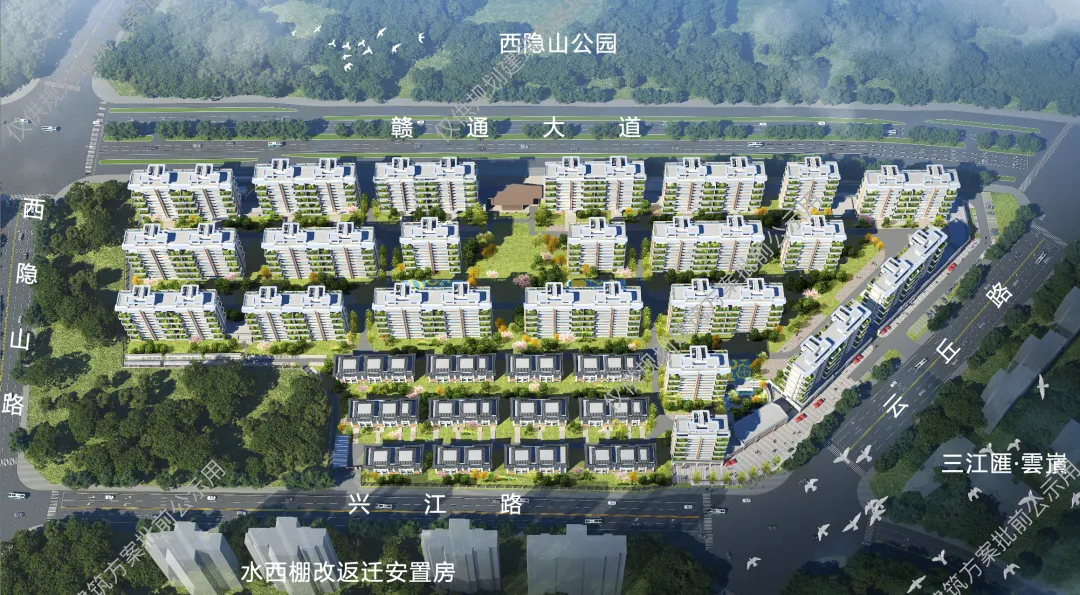 ▲ 赣州章贡区三江原墅(备案名三江原著)项目规划建筑方案批前公示,位于水西板块