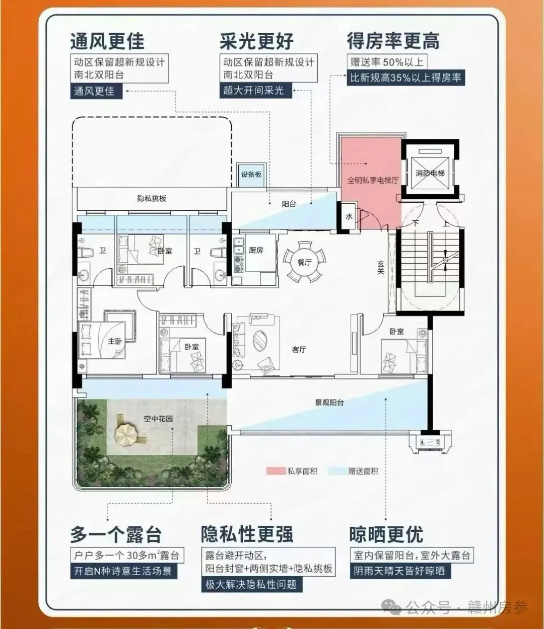 作为赣州首个入市的第四代洋房,三江原墅采用单露台的设计,挑高约 6.2 米。每一户仅一个空中花园,有南北之分,保留了南北双阳台,整体的使用率预计可以做到 150% 左右。配套上,三江原墅紧邻赣通大道,南侧是三江匯和中海悦江府项目,地块不临江。地块东侧是规划中的西隐山公园、赣州市三江口中学、赣州市文清路小学三江口校区,距离客+Village 商业综合体、滨江公园也很近,周边配套规划蛮完善,不过整体兑现仍需要较长时间。进度上,目前项目售楼部已开放,已经有多栋住宅同步在建。元旦前,项目给出的放风价是 5888 元/㎡ 起,整体均价估计在七千左右。四代洋房单价 5 字头,远低于市场正常价格,直接掀桌子了!随着三江原墅项目规划批前公示的发布,接下来将具备拿预售证的条件,估计春节前后有望首开。后续若有开盘的消息,内参君还会第一时间分享。▲ 赣州三江原墅所处位置