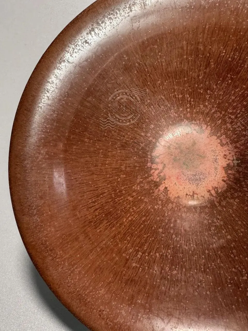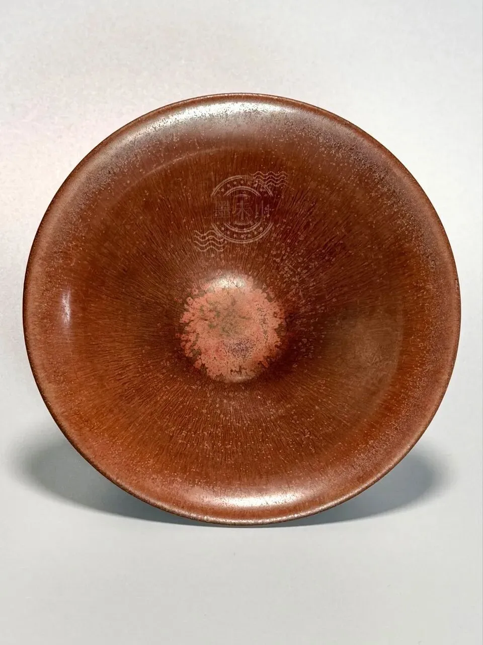 然而历史的复制从来不是简单的重复,窑火的艺术更崇尚偶发的天成。正是在与赣州市博物馆馆藏重器高度相似的框架内,此件由赣州藏家蓝先生收藏的这件宋盏建窑红兔毫撇口盏,绽放出了其独一无二的个性魅力与收藏价值。