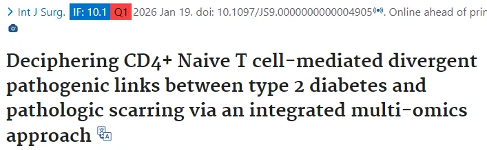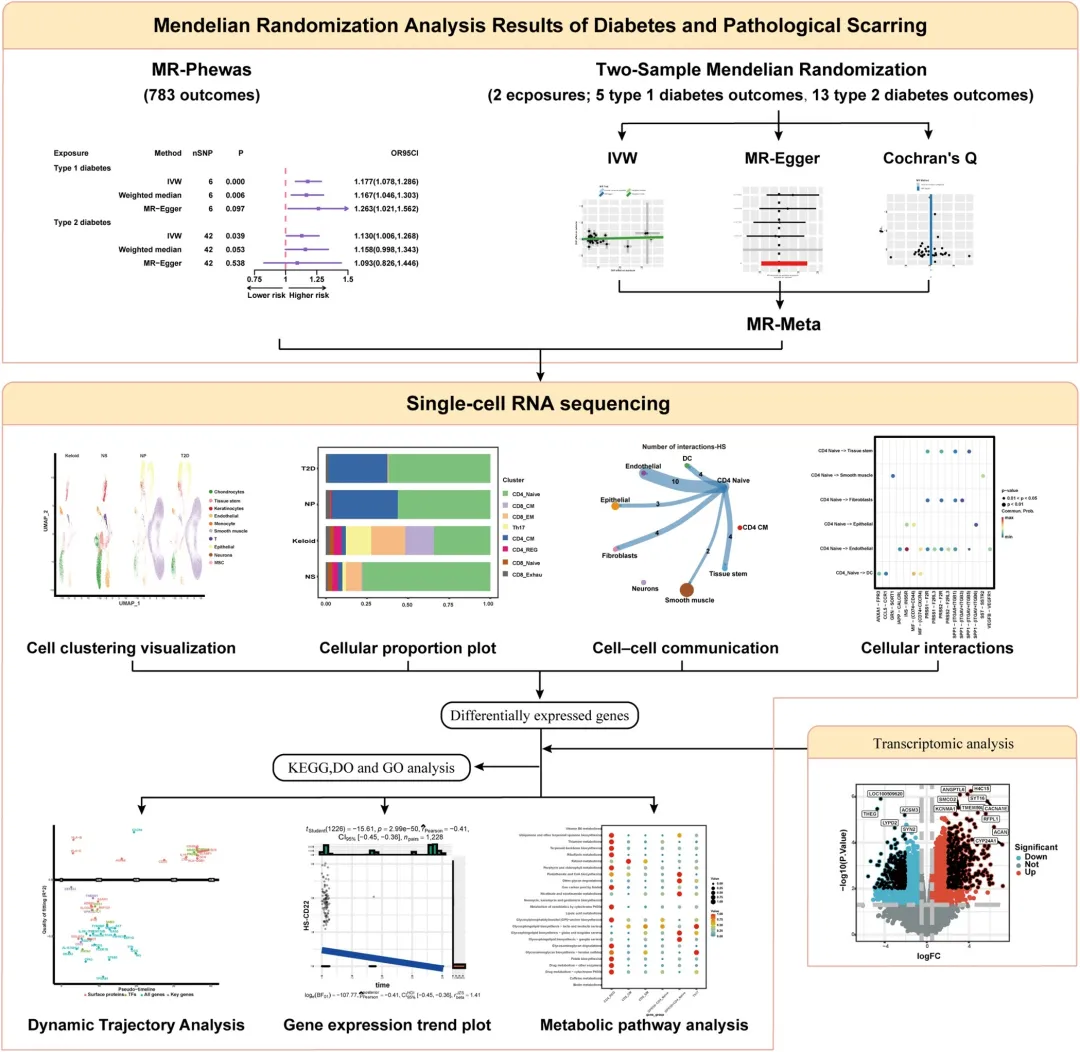 题目:通过综合多组学方法解析 CD4+ 初始T细胞介导的 2 型糖尿病与病理性瘢痕之间的不同致病关联