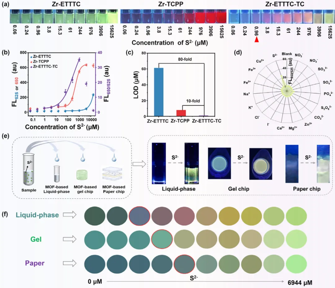 金属有机框架(MOFs)是由金属节点和有机配体通过配位键自组装形成的多孔晶体材料,具有高孔隙率、大比表面积和化学可调的孔表面,非常适合开发先进传感器。其中,荧光MOF传感器因其高灵敏度、快速响应和易于观察而备受青睐。