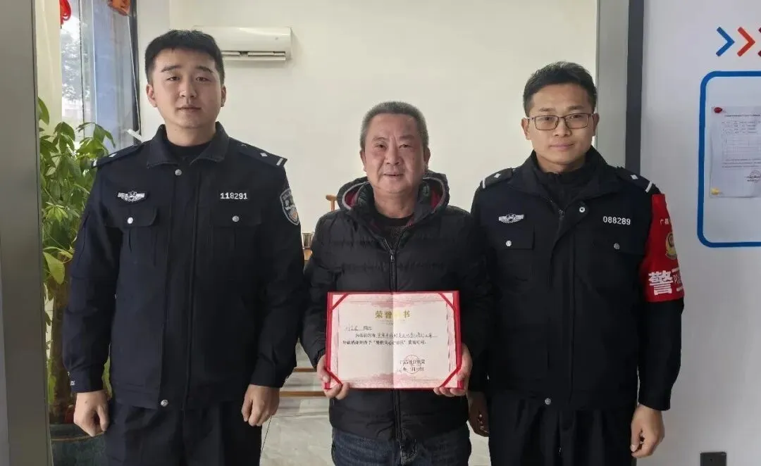 “为表彰您在严寒中救助走失儿童的善行义举,特此感谢并授予‘警民同心好市民’荣誉称号'。”1月22日,广昌县公安局民警上门对刘先生进行表彰,现场颁发荣誉证书。这是广昌县公安局首次向群众颁发热心救助类荣誉证书,旨在通过此类表彰,进一步弘扬社会正气,激励更多群众参与到平安建设中来。