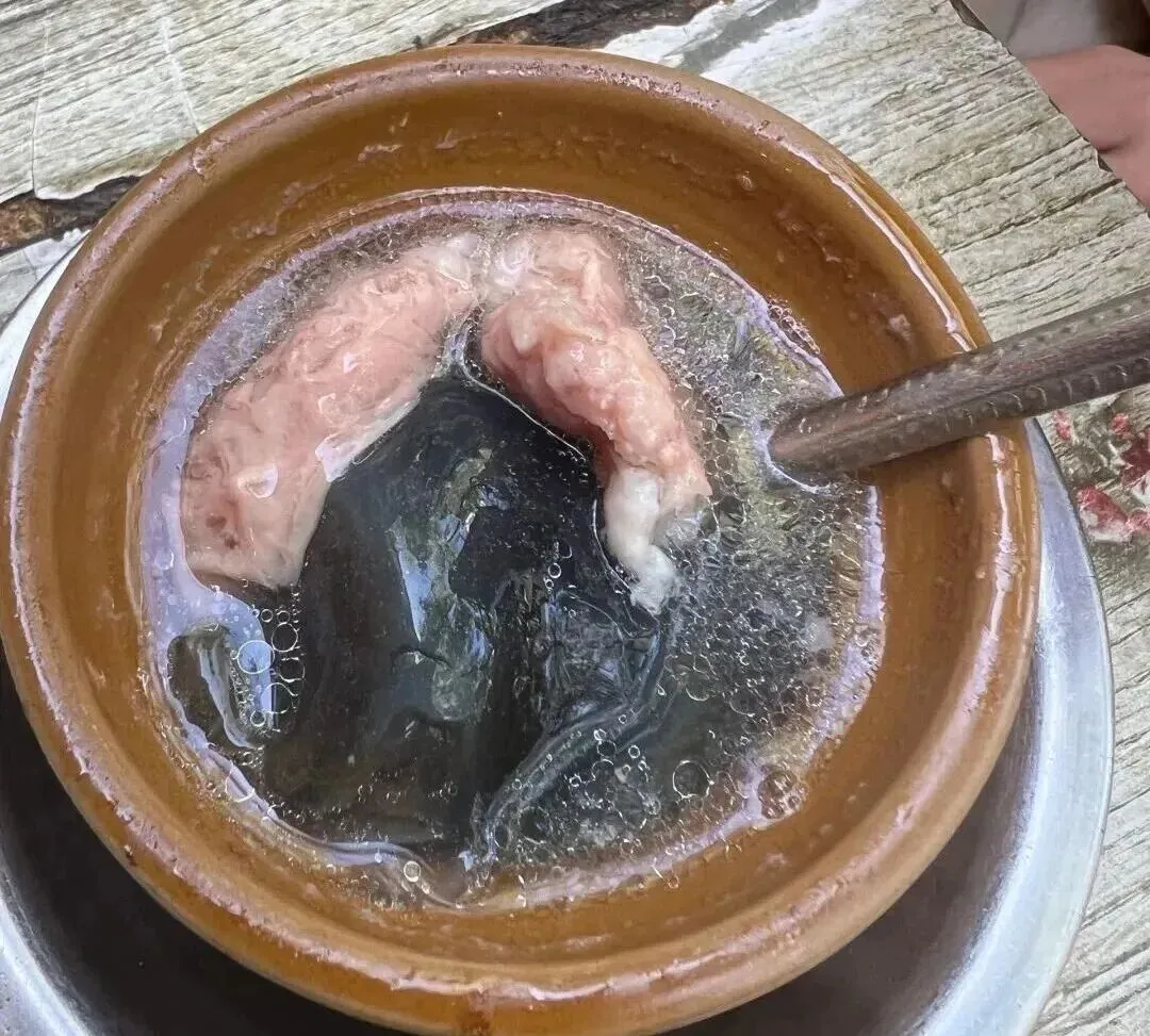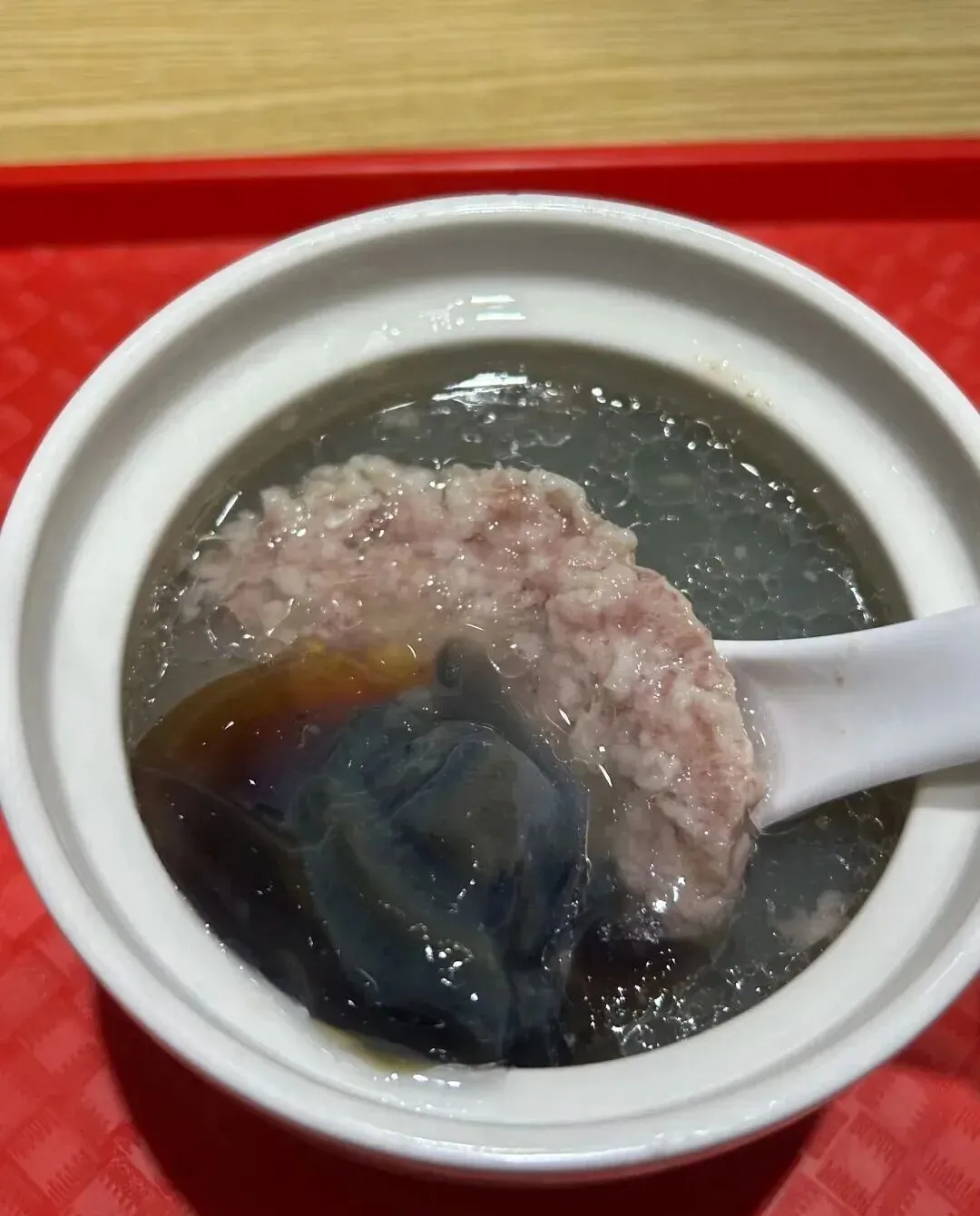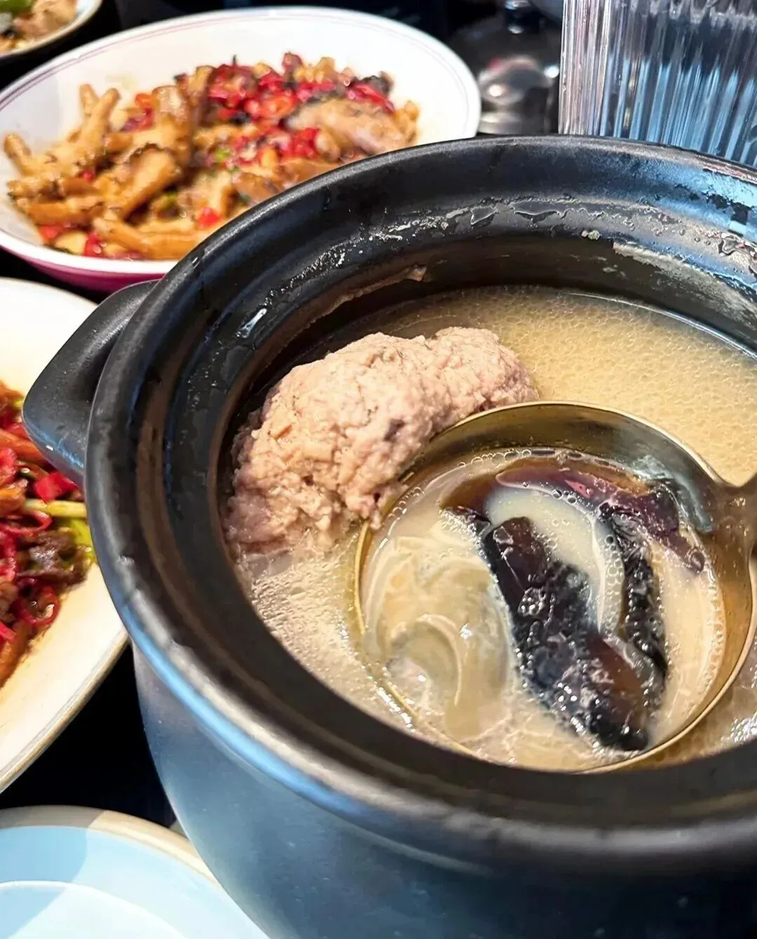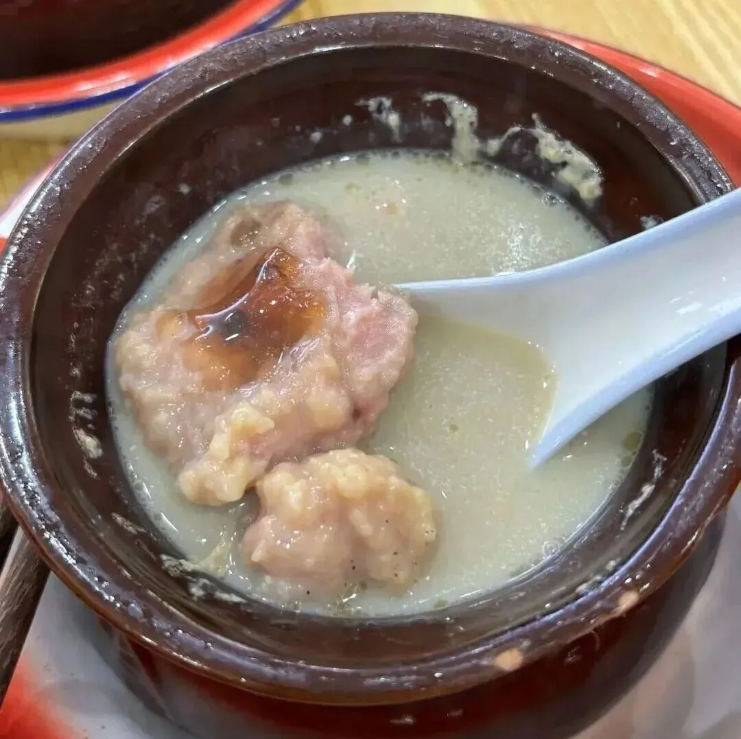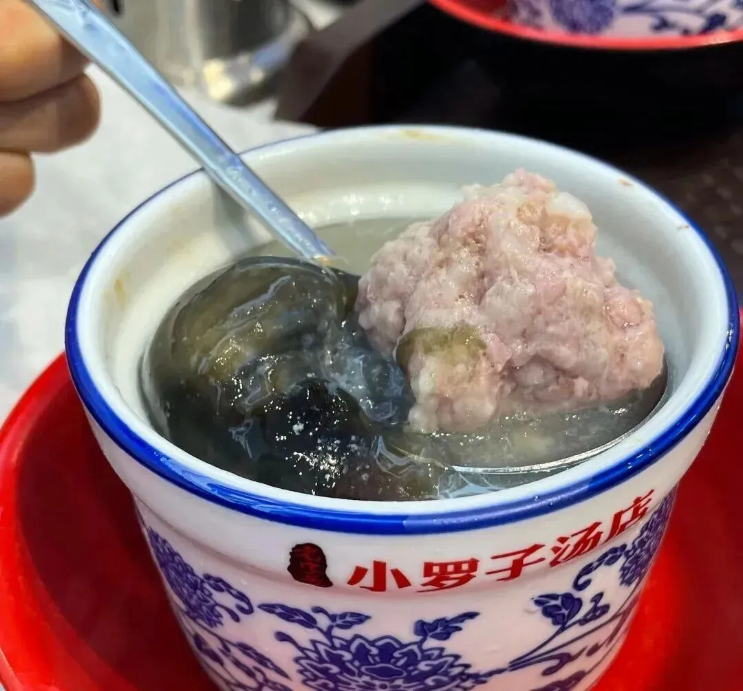 我回来之后一直在想 , 这个汤到底怎么做的啊?我自己在家试了两次 , 皮蛋要么炖不化 , 要么化过头变成一锅糊糊 , 肉饼也总是太柴或者太散。