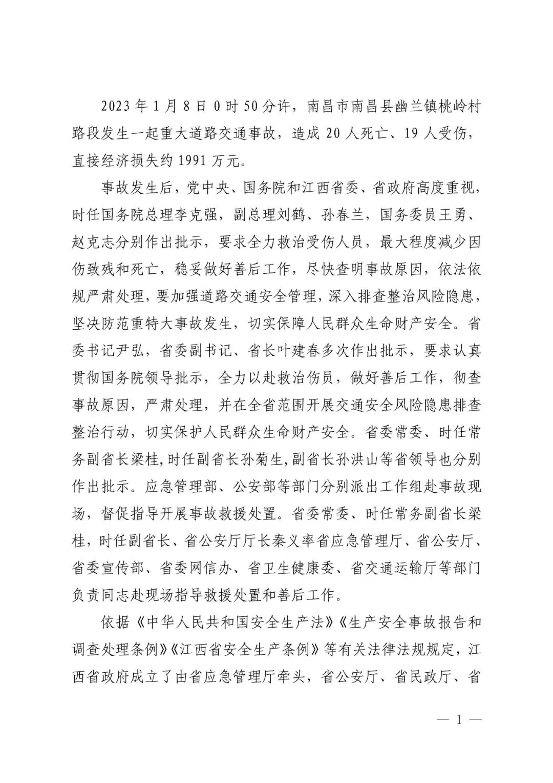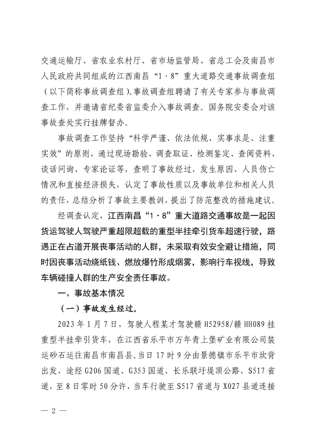 交通事故调查报告:2023年江西南昌1.8重大道路交通事故