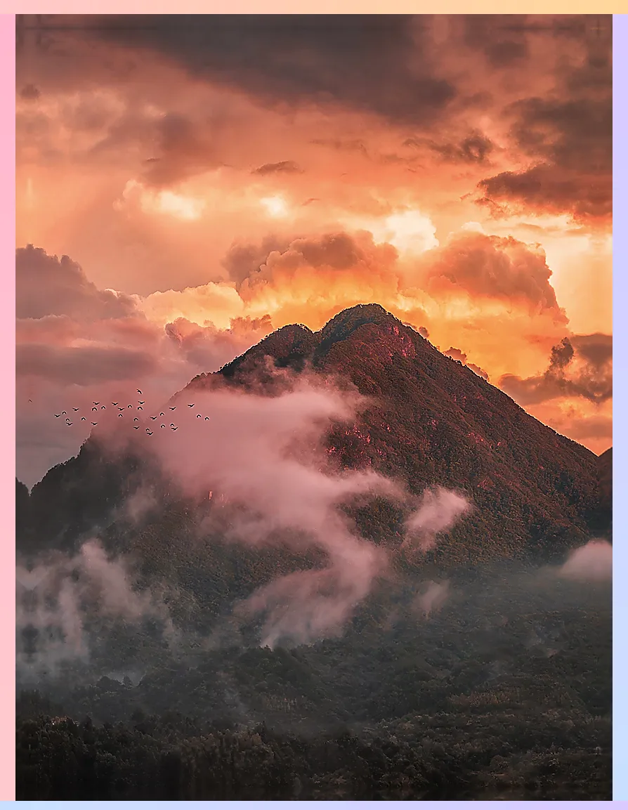 工业的硬朗骨骼与山水的柔软腰身,被一阵晚风轻轻挽起,一边是热烈的烟火,一边是清冷的修行。