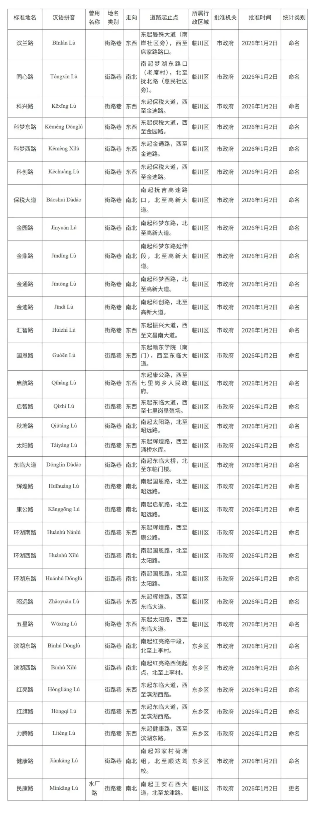 根据《地名管理条例》规定,“滨兰路”“同心路”等31条道路命名和1条道路更名已由抚州市人民政府批准,现予以公告。