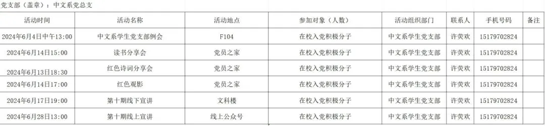 赣州师范高等专科学校文明实践活动计划表(2024年6月)