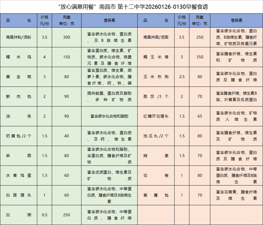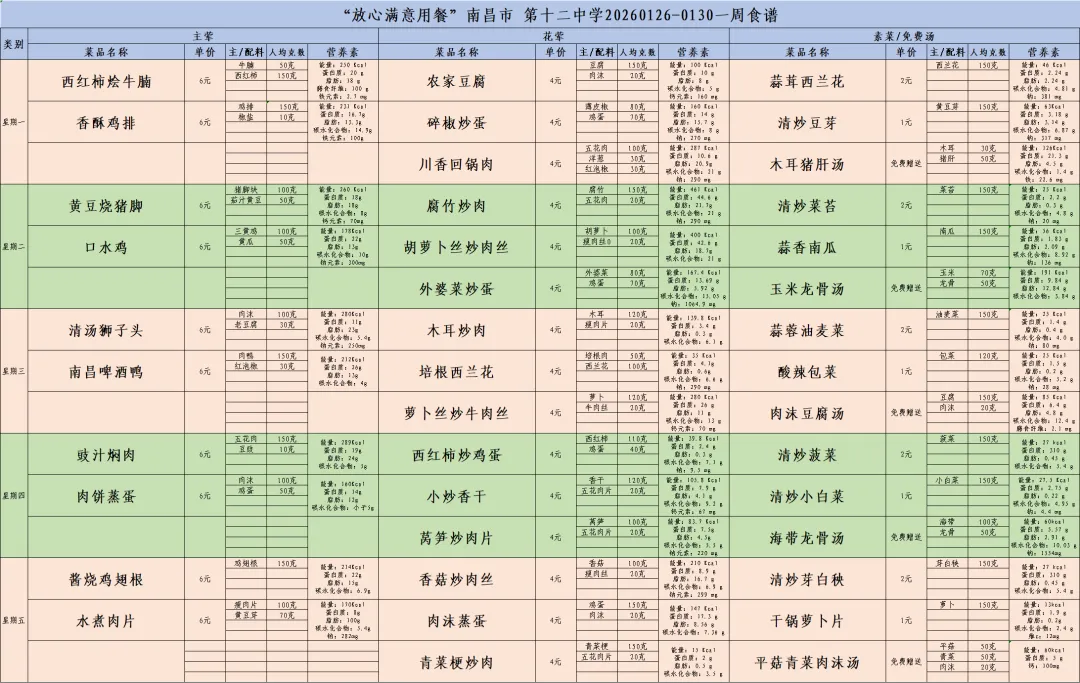南昌十二中1月26日-1月30日