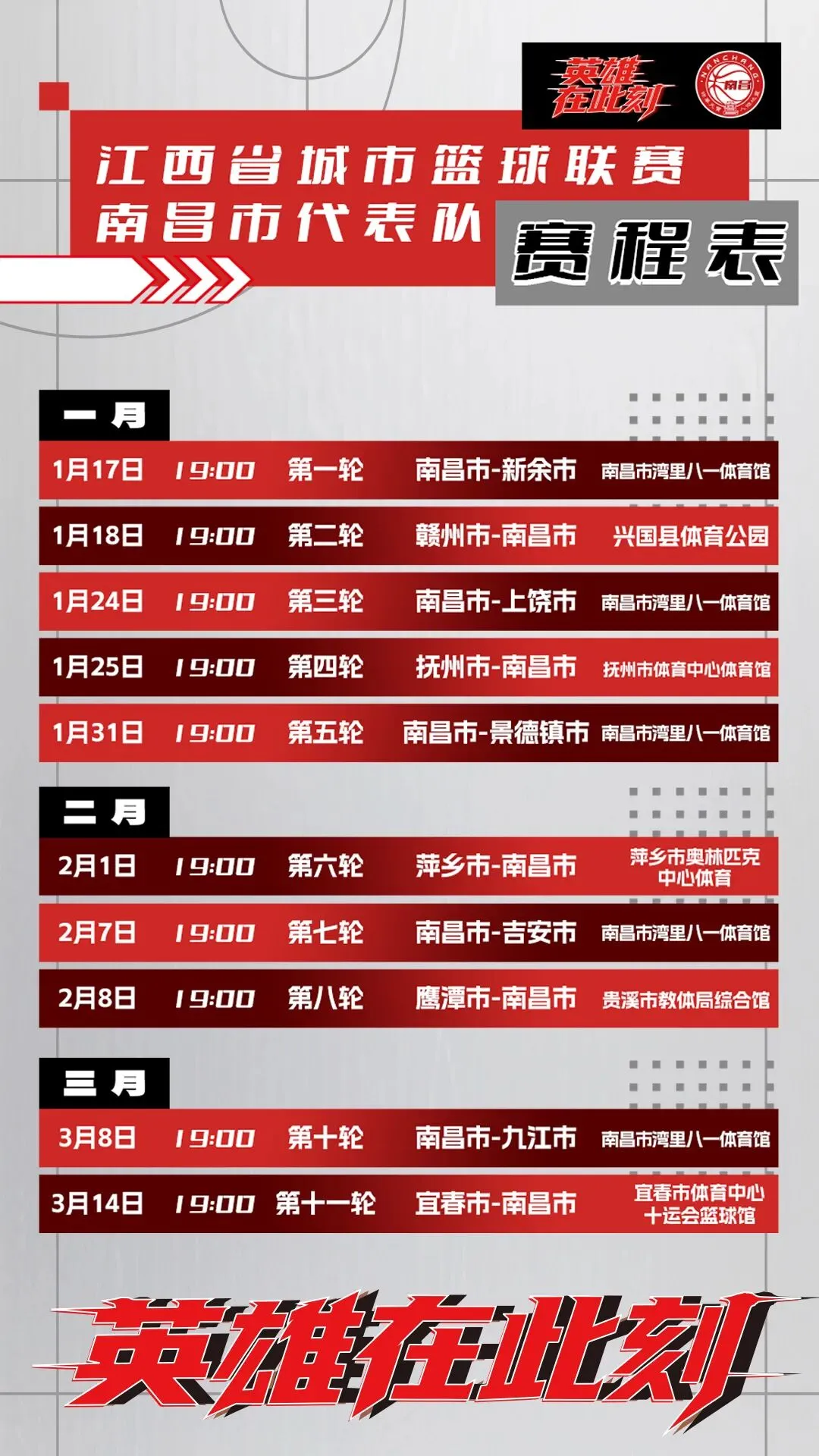 1月25日晚,南昌市代表队以84:79力克夺冠热门强队之一的上饶队,继前两轮连续告捷后,成功斩获小组赛三连胜,以不屈的意志和不败战绩点燃了全城球迷的热情!正式开赛,南昌市“定海神针”齐城开场先声夺人,在得分王牌张耀升的缺席情况下揽起得分大任,以个人独得8分的开场强势宣告硬仗的开始,上饶队状态略显慢热,南昌队再次凭借游宗坤、李仁杰等年轻小将的多次内外线配合第一节战罢获得了9分的领先优势。