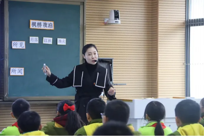 教师围绕读、听、说、写四个方面深入分析讲解作品《枫桥夜泊》,引导学生体会静态描写与动态描写,整堂公开课紧扣教学目标,让学生在学思践悟中掌握学习古诗的方法。