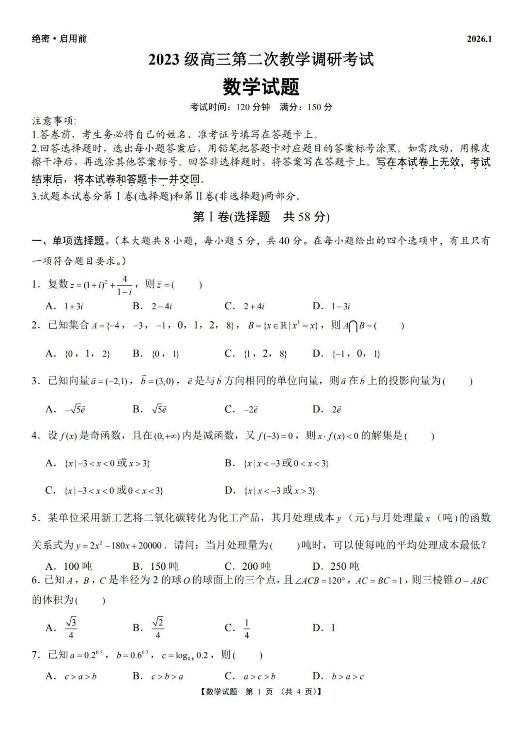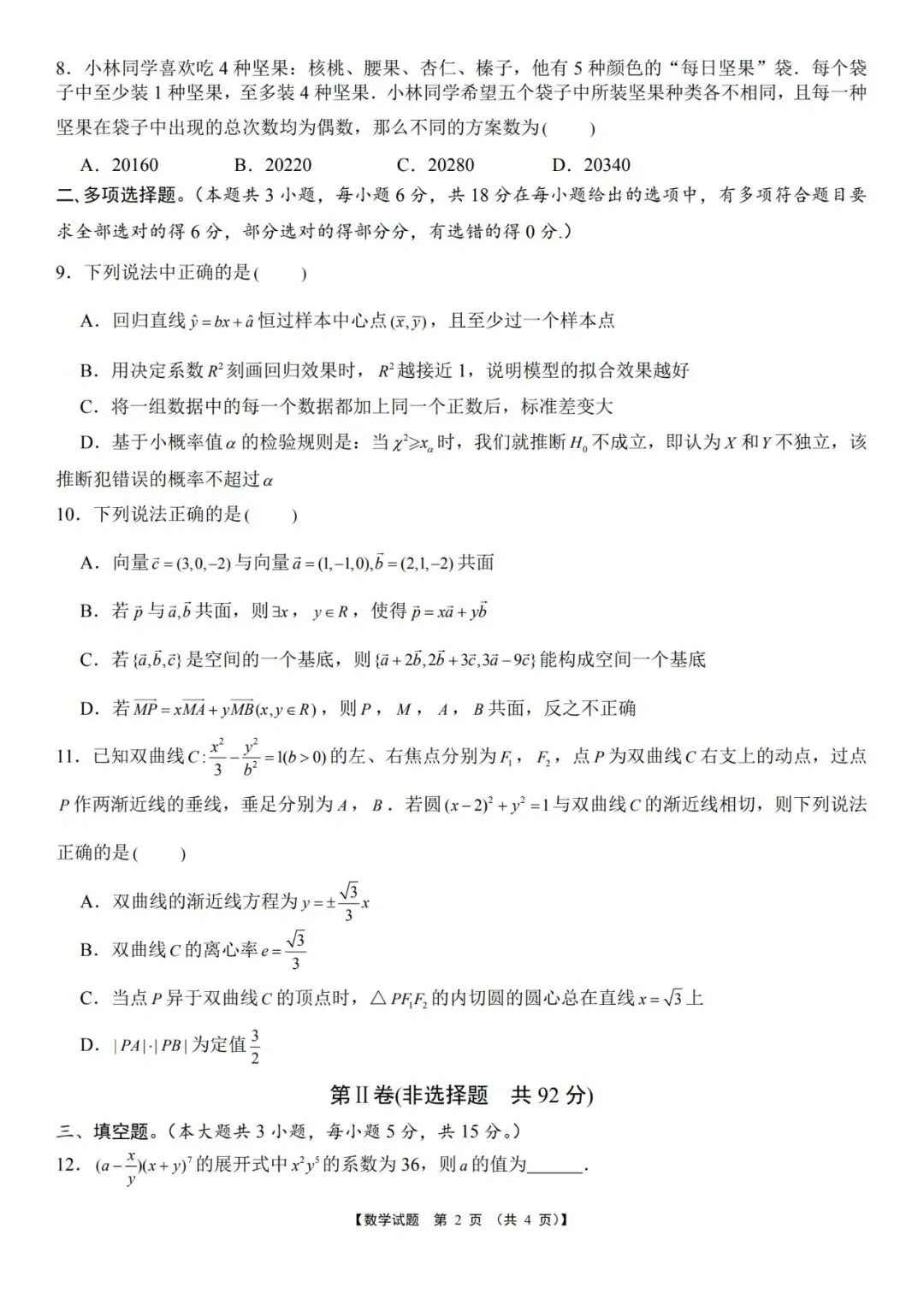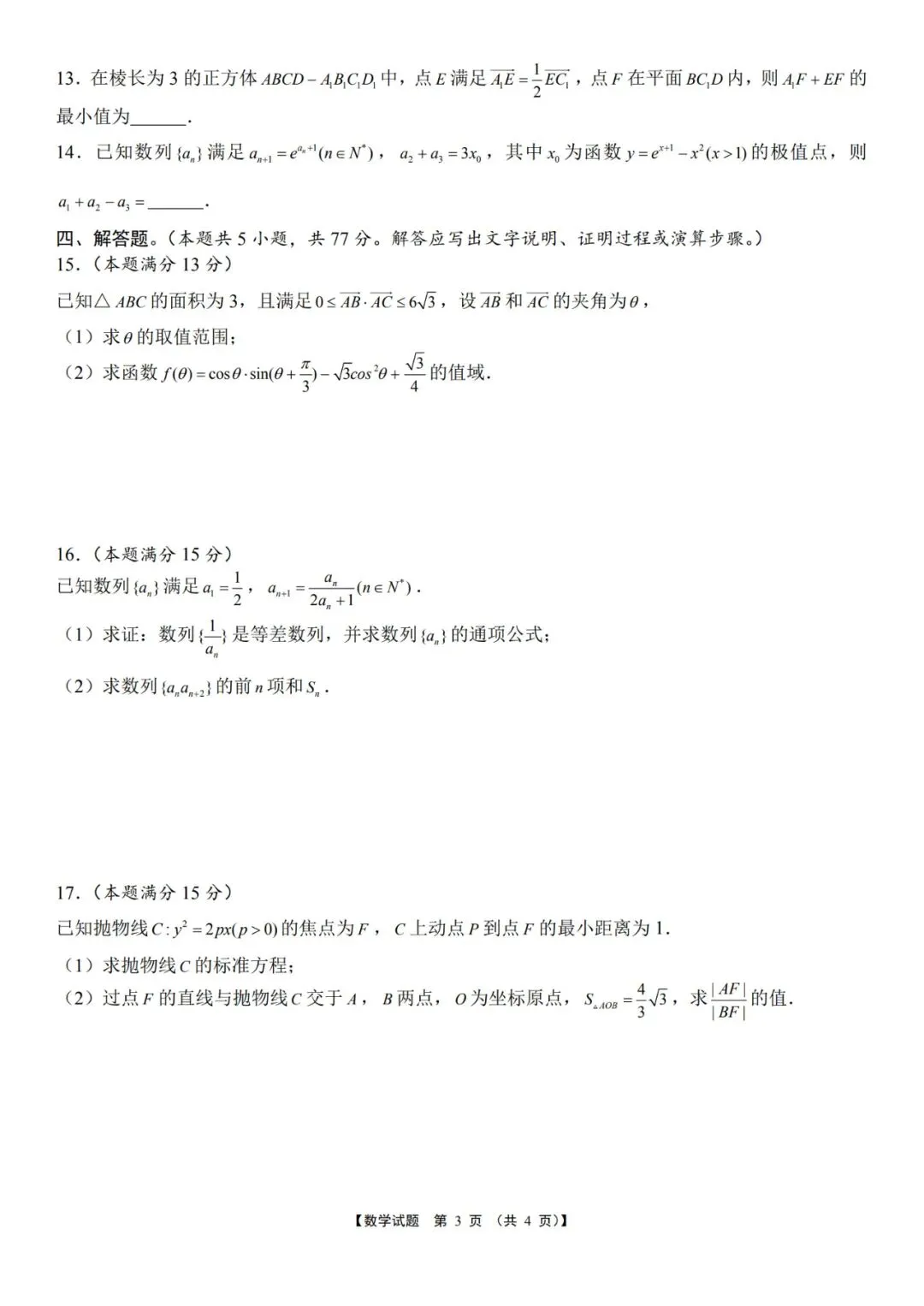 >江西省赣州市部分学校2025-2026学年高三上学期第二次教学调研考试数学试题及详细答案