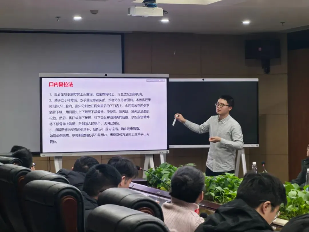 本次培训班由南昌市洪都中医院推拿科专家分别进行主题授课。培训班聚焦颞下颌关节紊乱病,详细讲解了疾病的发病机制、临床表现及诊断要点;现场演示了颞下颌关节紊乱病的治疗手法,并从操作的力度、角度、频次等细节进行逐一指导,确保学员能够准确掌握实操要点,会议现场学习氛围浓厚、互动交流频繁。