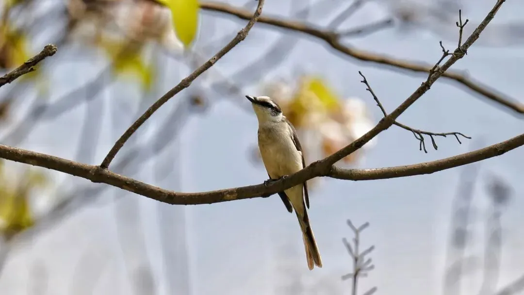 恰恰相反!它是森林里最经典的“红绿灯”或“辣椒配色”。“小灰山椒鸟”这个名字很容易让人误会。实际上,它拥有山椒鸟科最经典、最醒目的羽毛配色:雄鸟上身是帅气的灰黑色,而下身从喉部到尾下,则是鲜艳的亮黄色;雌鸟则把黄色替换成了明快的柠檬黄或橙黄色。飞行时,它们就像一串跳动的“黄色小火焰”。所谓“小灰”,可能只是因为它比一些更大的近亲(如大鹃鵙)体型娇小。