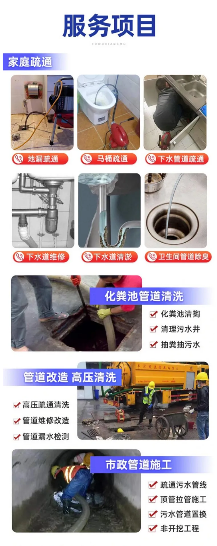 ✅ 家庭住宅:厨房、卫生间、阳台、地漏、马桶✅ 商铺门店:餐饮店、奶茶店、烧烤店、饭店后厨✅ 办公场所:写字楼、单位、学校、宿舍✅ 公共区域:物业小区、地下排水、管道维护