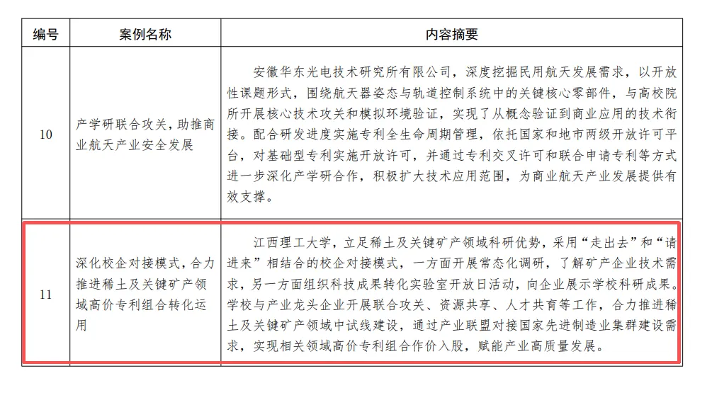 近年来,赣州市深入贯彻落实知识产权强国战略,聚焦稀土、钨、铜等关键矿产领域,以推动高校院所专利技术向现实生产力转化为突破口,积极探索符合地方产业特色的知识产权运营路径。此次入选的案例,通过系统性制度创新与平台建设,探索破解高校专利“转化难”问题,形成了可复制、可推广的实践经验。