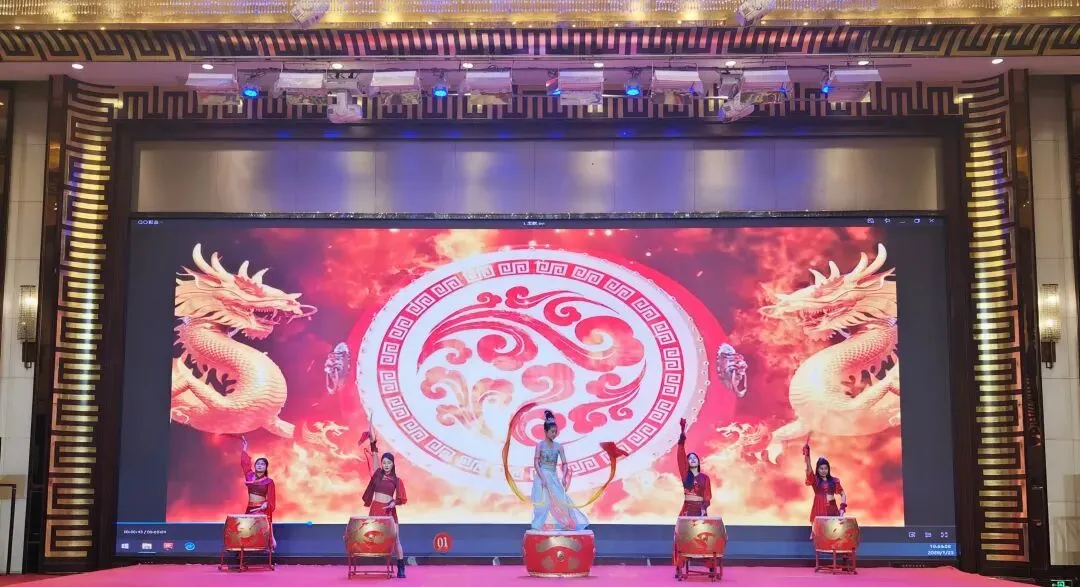 晚宴以“梅聚赣商,共启华章”为主题。现场灯火辉煌、乡情融融。一段激昂磅礴的《龙鼓盛世》拉开演出序幕,随后《一路生花》等经典歌曲接连唱响,多种舞蹈精彩纷呈,充分展现赣商才艺与活力。晚宴穿插授牌仪式、贺礼赠送、抽奖环节,洋溢着温馨欢快、团结奋进的氛围,生动展示了在梅赣商的深厚情谊与携手共赴新程的坚定信心。