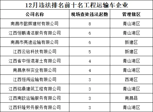 南昌交警根据2025年12月工程运输企业风险等级及车辆违法情况进行梳理并对