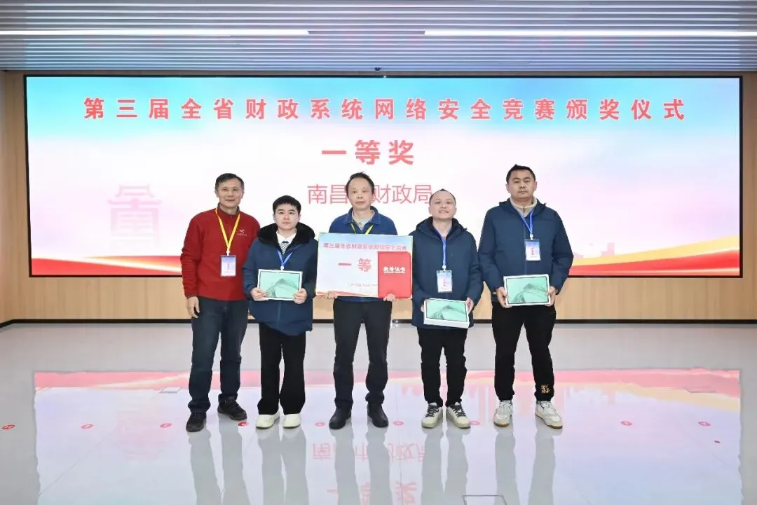 近日,第三届全省财政系统网络安全竞赛颁奖仪式在南昌举行。南昌市财政局荣获一等奖。