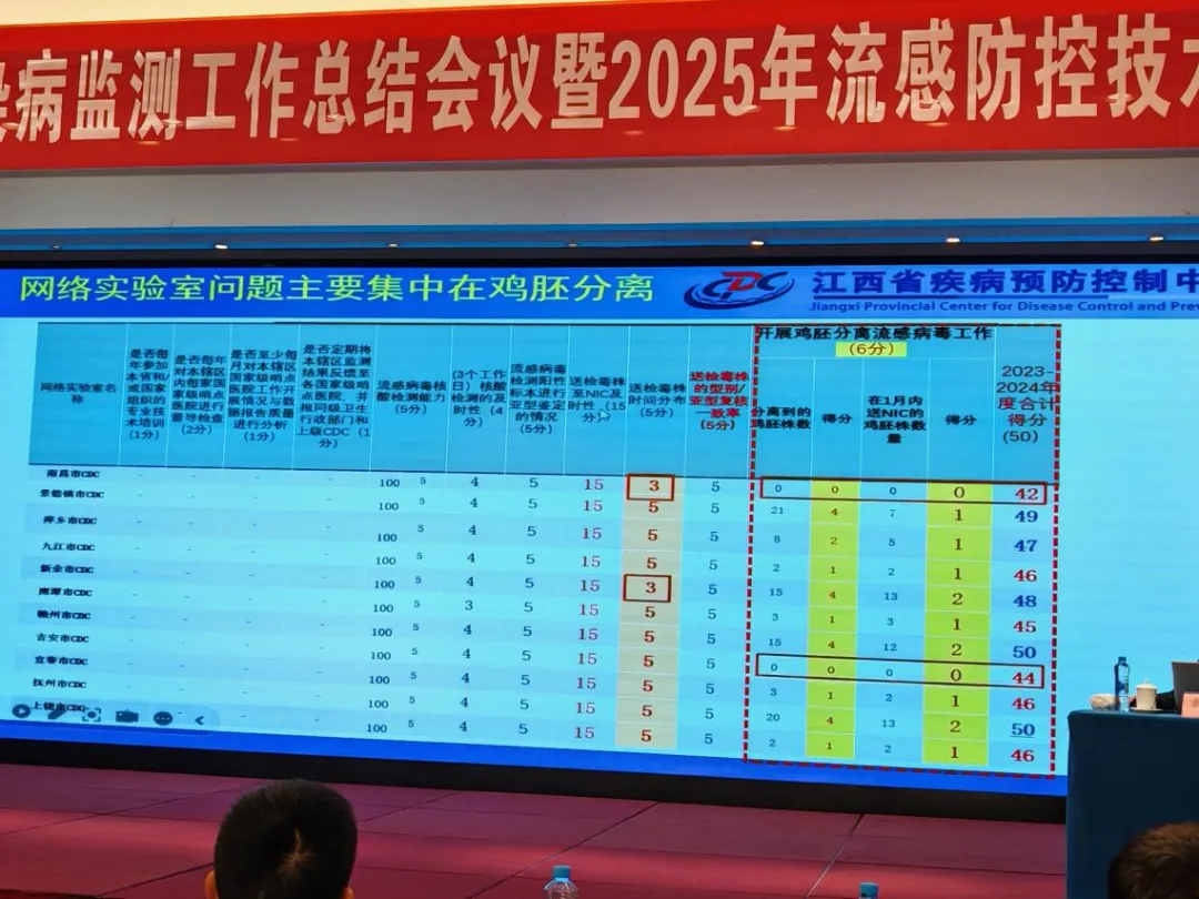 图为抚州市疾控中心在流感监测综合评分荣获满分50分