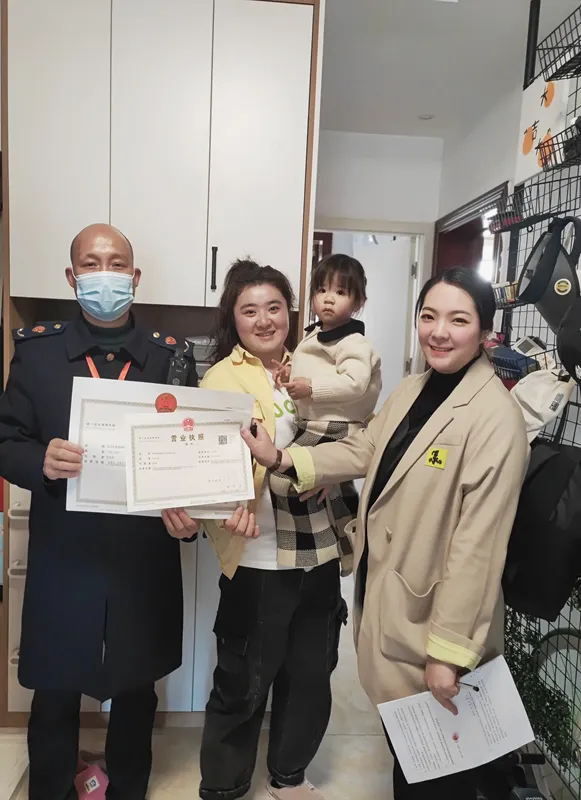 小吴(左)在南昌县市场监管局莲塘分局顺利拿到营业执照
