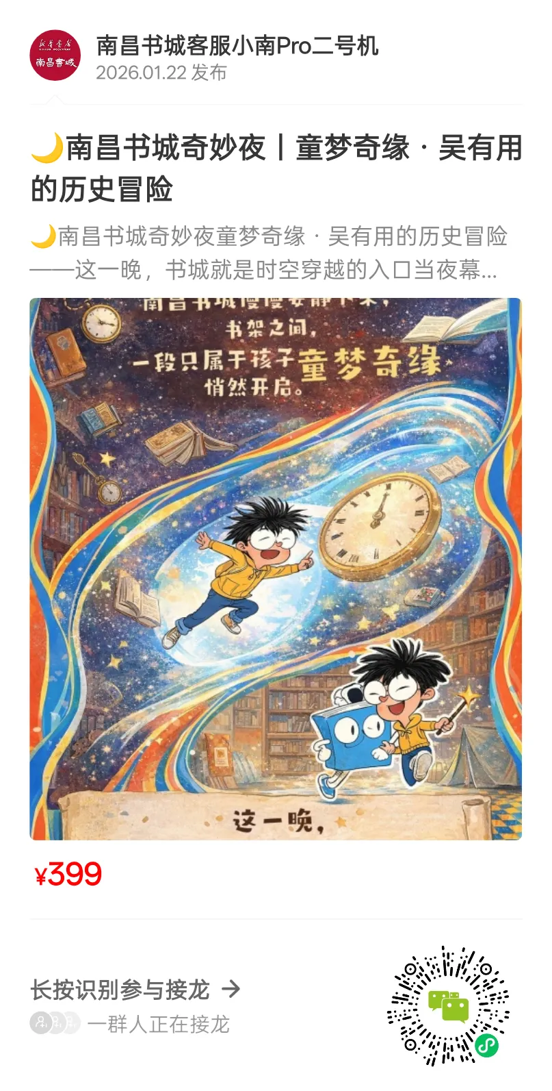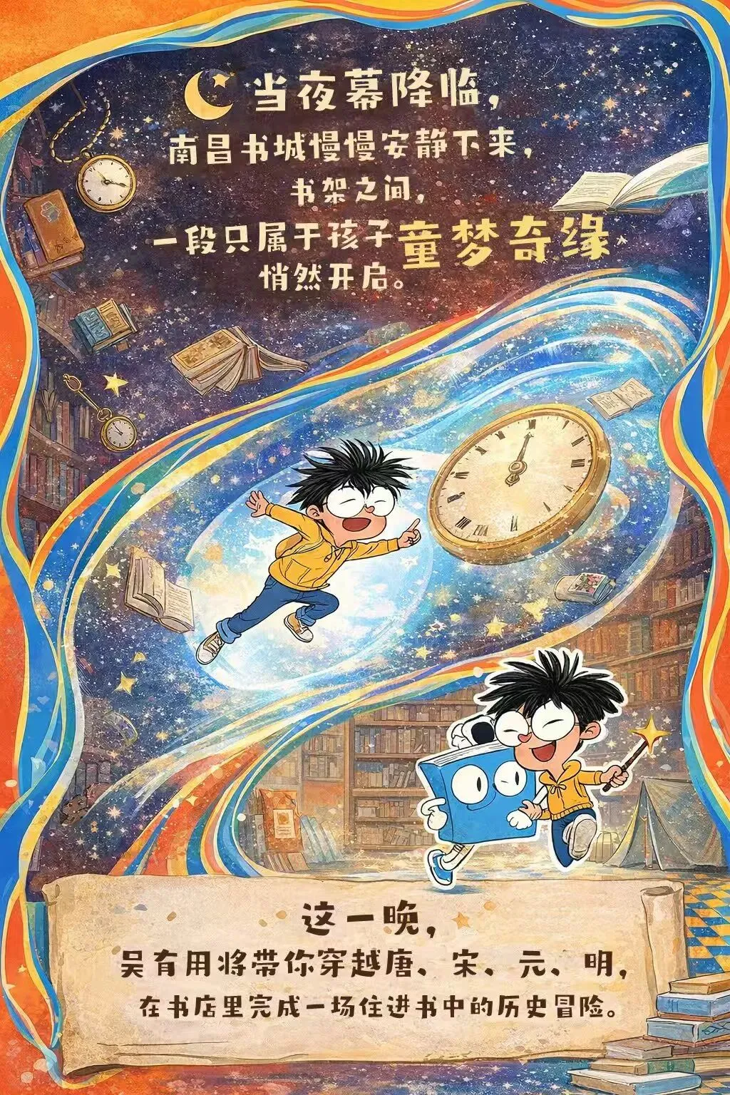 为保障小读者在“南昌书城奇妙夜·童梦奇缘 · 吴有用的历史冒险”活动中的安全与体验质量,请家长留意以下事项: