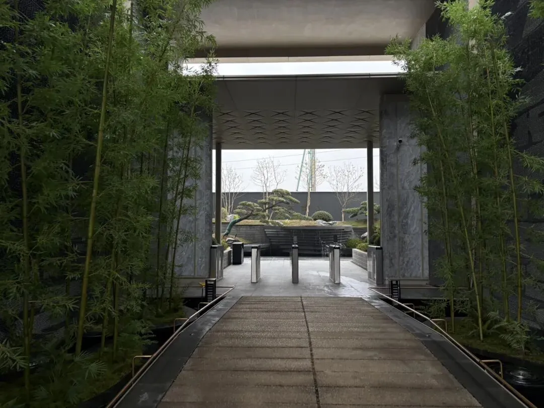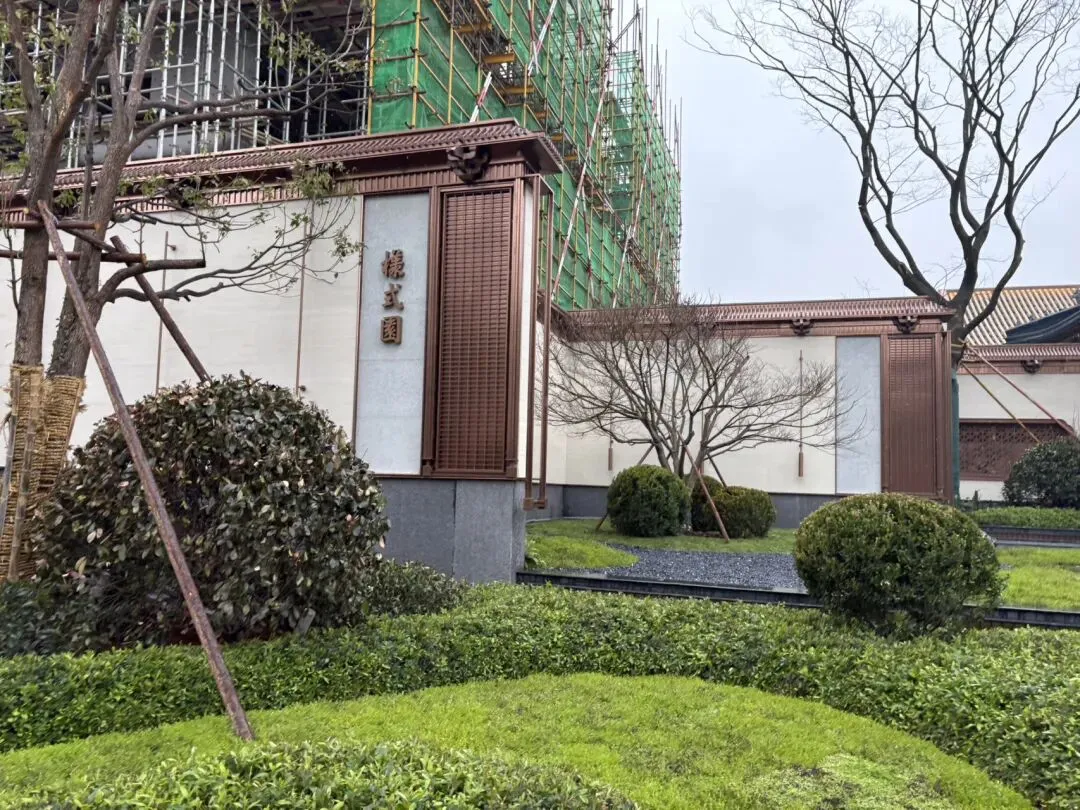 这大门颜色太不讲究了,这不是私家庭院,这是小区啊,小区用这种原木色个人真的欣赏不来,门口6处拴马柱,这跟我看到的中式建发和保利完全不一样,这....
