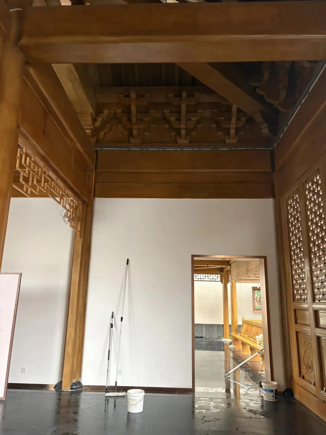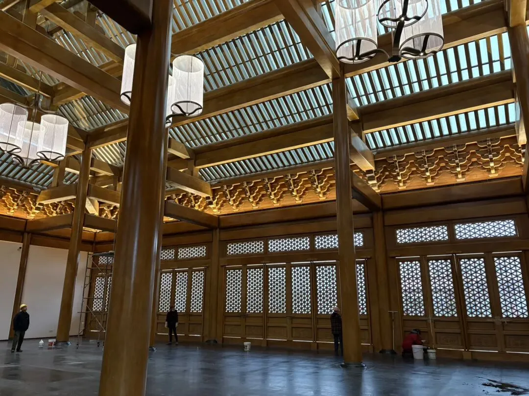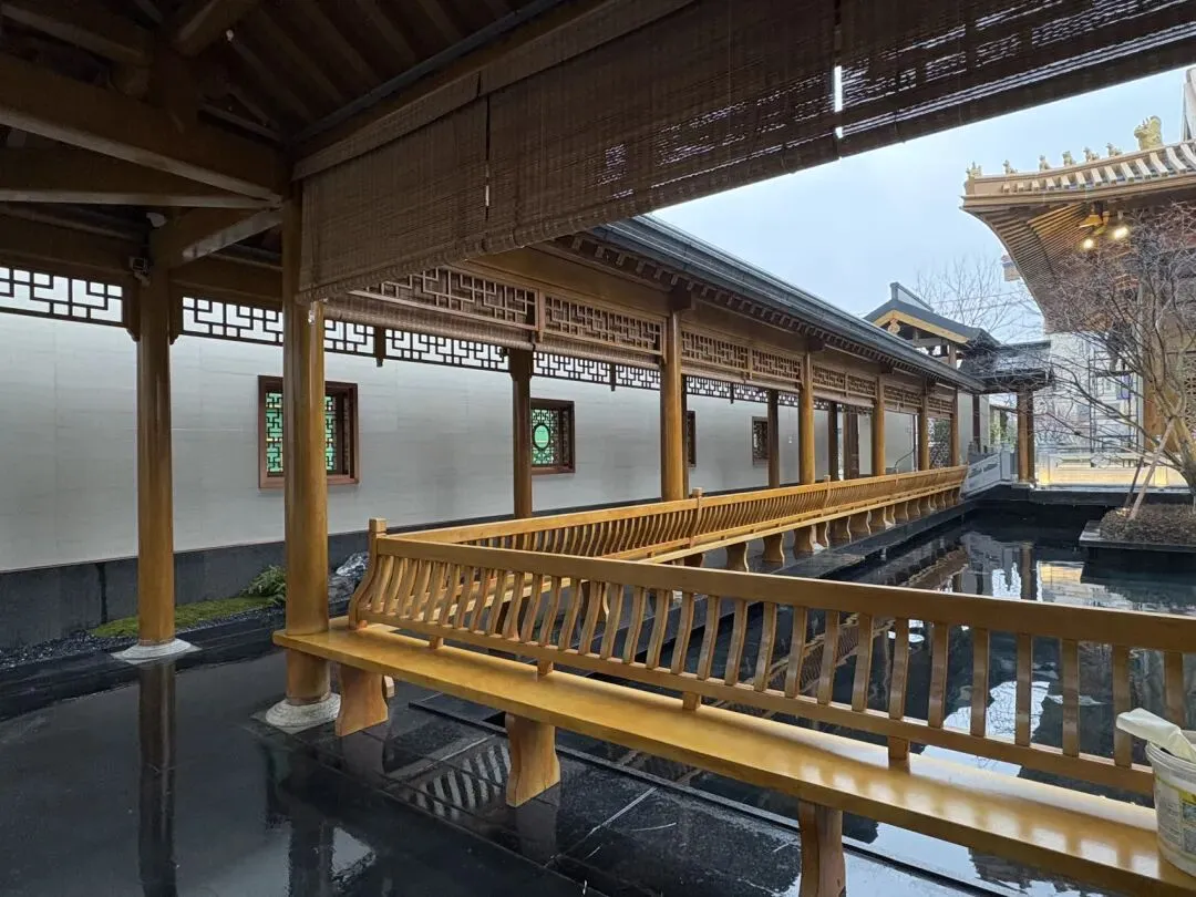 规格挺大的,长廊还是挺实用淋不到雨,榫卯建筑、中国结等古建筑细节拿捏还行,造价并不低。