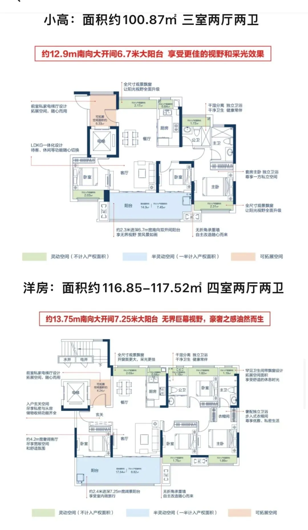 小区一共4个户型,小高层3个户型,洋房一个户型。