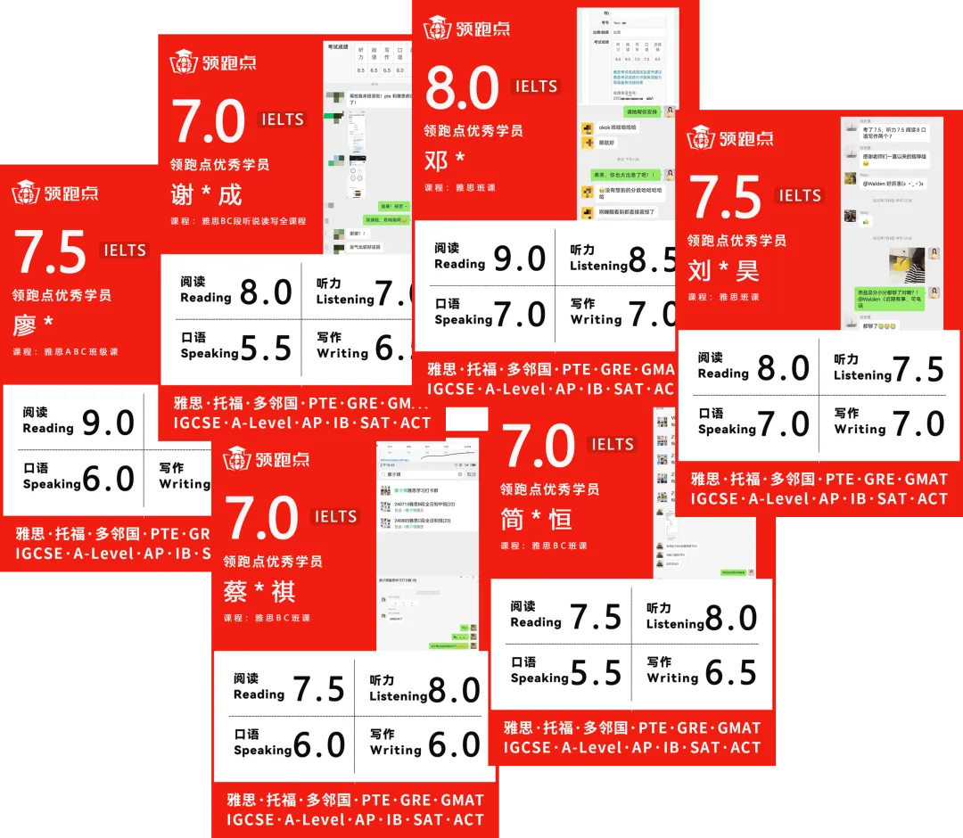 为了让学员提前适应考试节奏,从容应对实战,立思辰留学·领跑点外语每月安排2次阶段性测评与4场全真模考,由专业教师团队亲自阅卷解析,帮助学员查漏补缺,及时调整学习策略。考前,还会开展冲刺押题指导,梳理高频考点与应试技巧,助教全程陪伴答疑,缓解学员的考前焦虑。凭借科学完善的教学体系与专业的师资团队,近三年来,立思辰留学·领跑点外语的学员平均提分1.8分,零基础学员通过3-6个月的系统培训,平均提分1.5-2.0分,众多学员成功从6分瓶颈突破至7分,顺利拿到心仪院校的offer,在海外求学之路上迈出了坚实的一步。