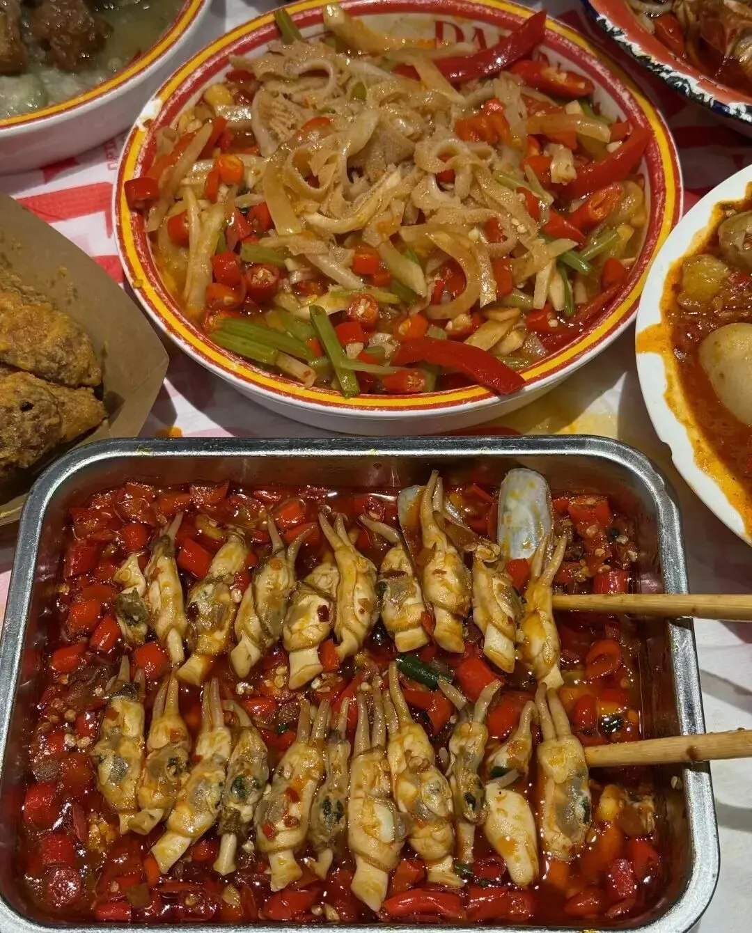 网上都在推那个"快乐五件套" , 什么炝烧大鸡脚、绝味牛蛙油浸鱼、蟹脚拌粉这些。