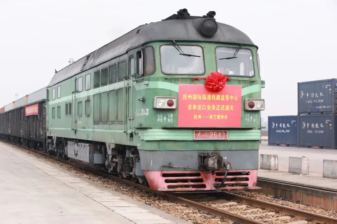 1月25日上午,随着火车鸣笛声响起,一列满载胶带产品的货运列车从抚州国际陆港启程,将通过宁波港发往荷兰鹿特丹港,标志着抚州国际陆港铁路监管中心正式封关运行。作为我市首个投入运行的铁路类海关监管作业场所,这也意味着我市在打通国际物流通道、提升跨境贸易服务能级方面迈出了新的坚实步伐。