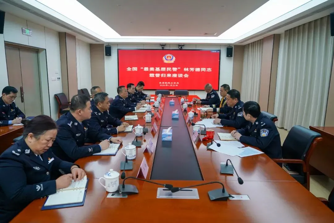 座谈会上,林芳德同志深情回顾了在京受到公安部、部铁路公安局领导亲切接见的情况,汇报了上级党委的殷切嘱托,畅谈了参加仪式的收获和感悟,他表示:要踏踏实实地扎根基层,把每一件小事做好、把每一次执勤守好,用实际行动回报组织的培养,和大家一起守护好铁路的平安畅通,不辜负“最美基层民警”这个称号。