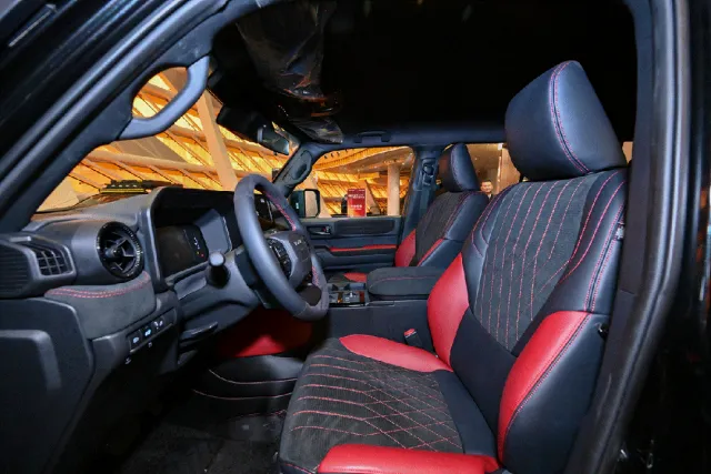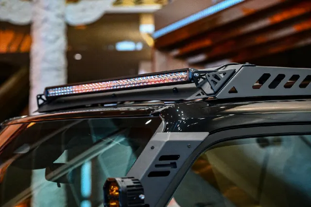 标配 128 升大油箱,续航超 1100km,搭配 5 毫米加厚底护板,无惧极端路况冲击;升级高强度铝合金牛栏杠、高强度碳素结构钢冲沙杠及一体化绞盘支架。配备 A 柱魔术支架、可集成各种灯光配置,灯光控制采用飞机座舱的按键设计,操作也更加方便。车辆还搭配了承重强、耐腐蚀的车顶平台,可以搭载工具箱、树枝分离器、侧帐等多种配件。外挂一体收纳工具箱,可收纳各类零碎物品;专利设计的侧爬梯,可以拉伸到地,还可以拆卸,当临时的梯子,堪称攀爬神器。同时车辆还搭载 MTS 全地形系统,协同四驱与后桥差速锁,复杂路况稳如坦途,内饰采用意式 Nappa 真皮与欧蒂兰麂皮绒翻毛材质,采用避线冲孔工艺,个性定制,让越野旅途更显格调。