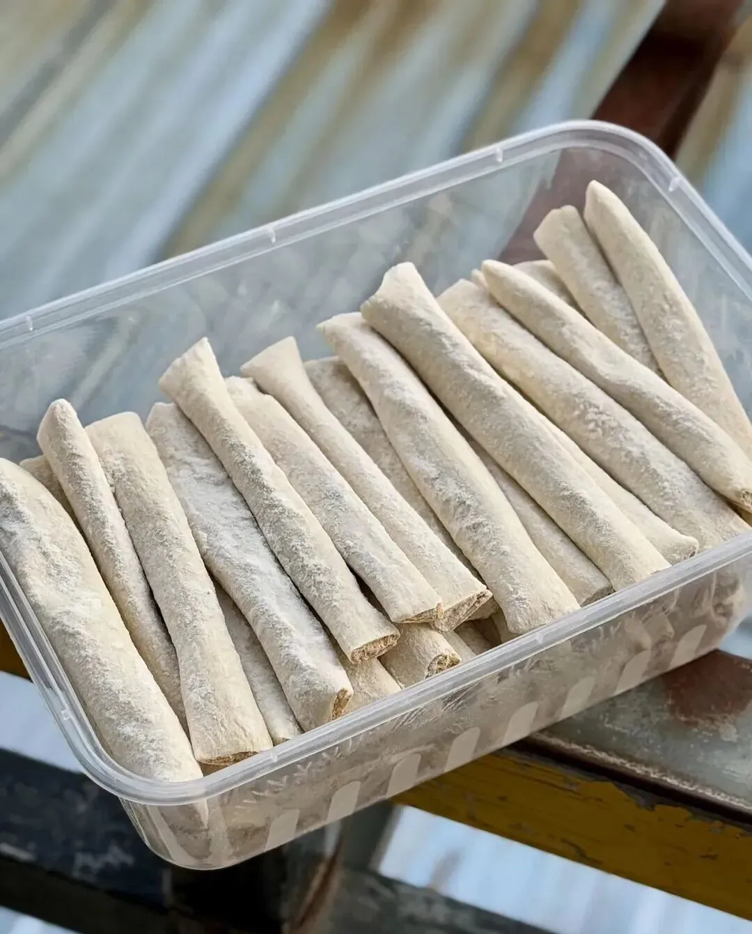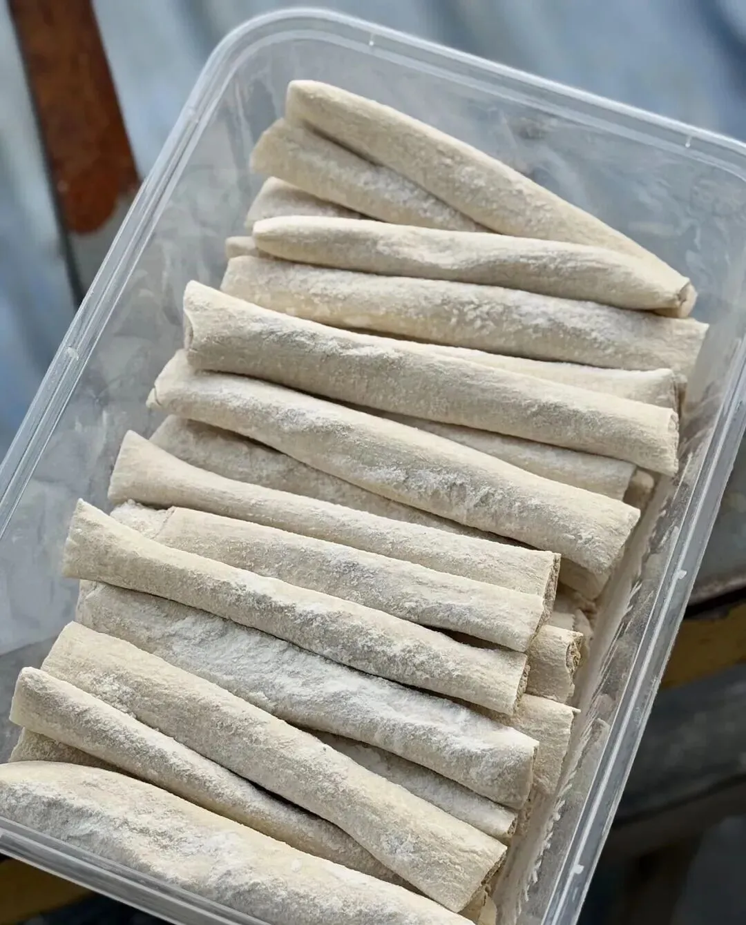 前两天在抚州街头闲逛 , 看到一个阿姨摆的小摊 , 面前摆着一条条金黄色的东西 , 我当时就愣住了。
