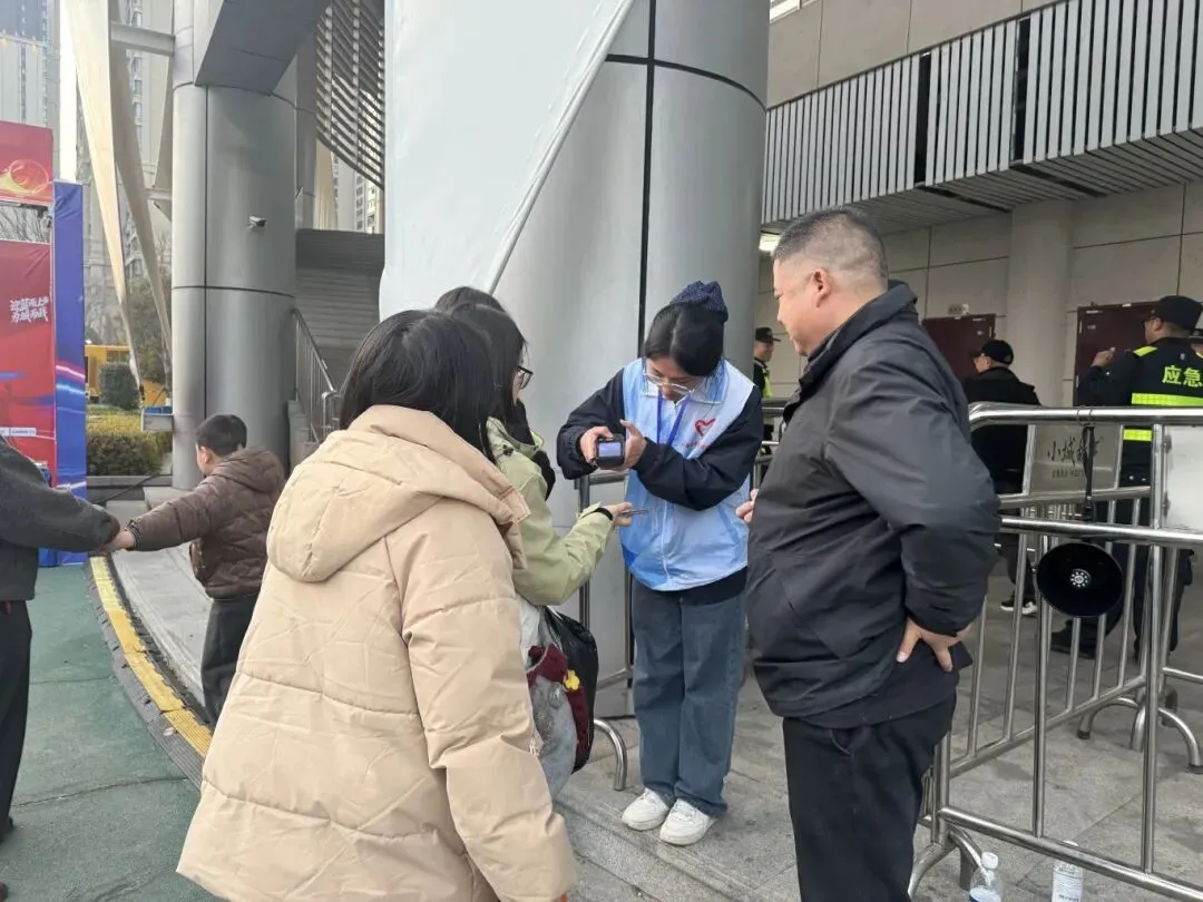 随着观众陆续抵达,检票口前,志愿者们一手接过纸质票根认真核验,一手熟练操作设备扫描电子票,快速高效地完成每一位观众的检票流程,确保入场通道畅通无阻。