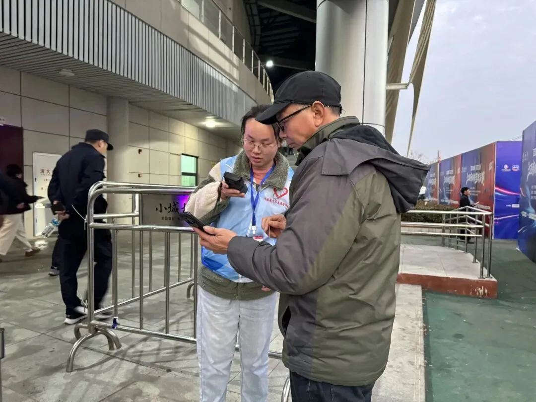 遇到年长观众或不会查看手机电子票根的观众,他们手把手指导操作,瞬间化解了观众的焦急,让观赛的第一步就充满暖意。