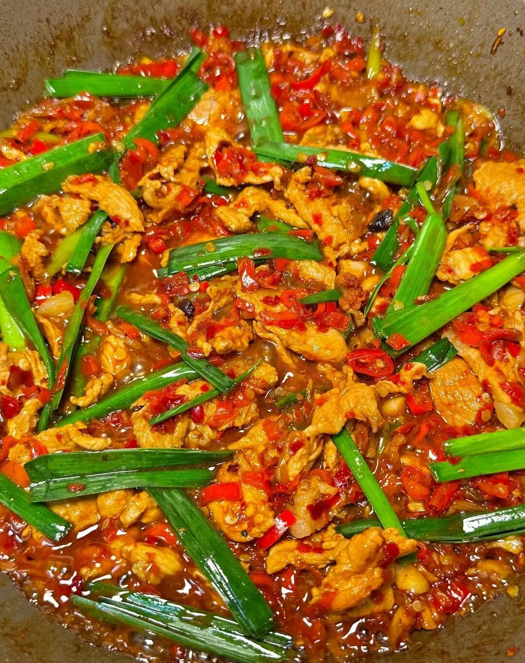 猛火快攻,油温要高,肉一下锅,“滋啦”一声,香气瞬间炸开。肉的鲜味被锁住,辣椒的魂魄渗进去,一勺盖在米饭上,油润红亮。一口下去,汗毛孔瞬间张开,风一吹,通体舒泰。