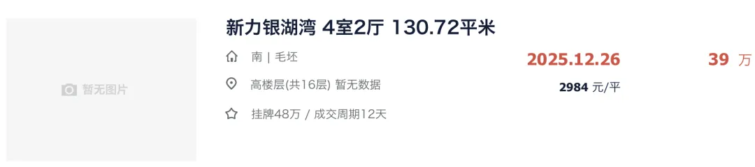 首套成交的二手房,不到三千一平的成交价,看似很便宜,实则符合市场行情,属于合理价格范围。毕竟现在城区不少远郊小区的价格几乎都砍半了,位置更好的赣县城北,4 字头起就能买到品质更好的小区。像新力银湖湾这类还未整体完工的乡镇盘,价格只有更低才能有机会成交。