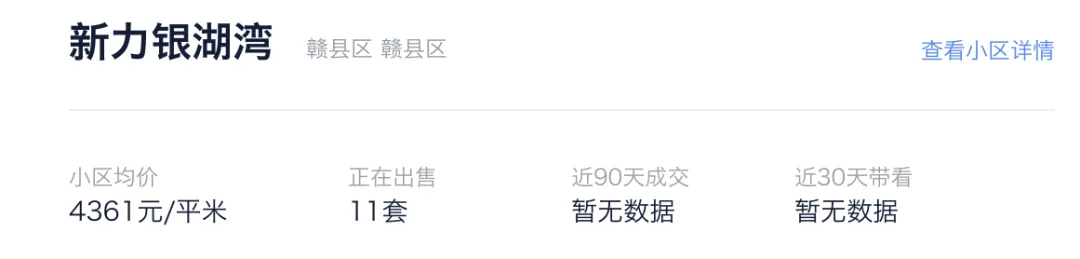 总的来看,赣县区新力银湖湾交房快 5 年才迎来贝壳首套成交,并不意外。毕竟楼盘位于乡镇里面,会考虑这个楼盘的也只有本镇的居民,而这类购房群体又少之又少。