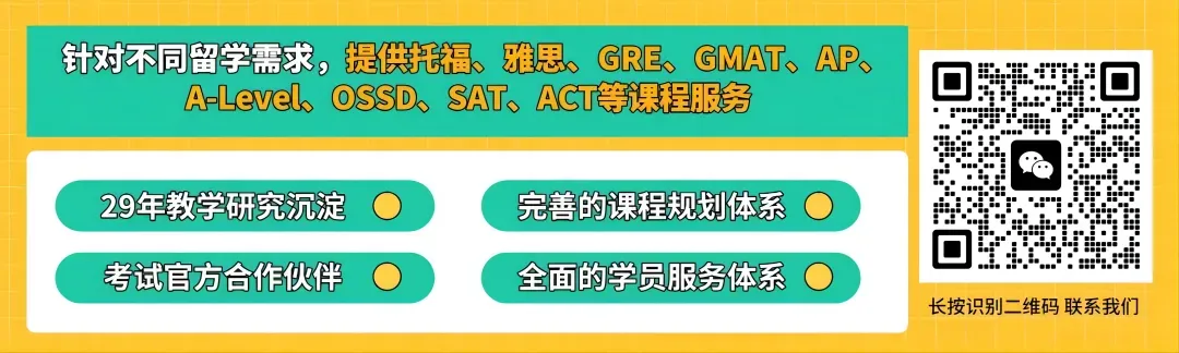 针对不同留学需求,提供多种有针对性的课程服务,包括雅思、托福、GRE、GMAT、AP、A-Level、OSSD、SAT、ACT等。
