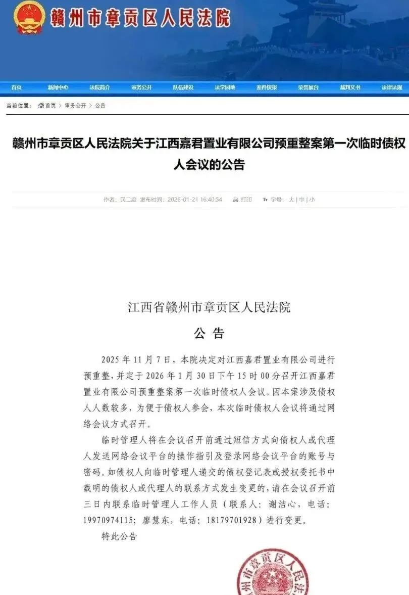 江西嘉君置业有限公司预重整案第一次临时债权人会议