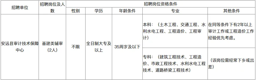 赣州市安远县审计技术保障中心公开招聘基建类辅审人员公告