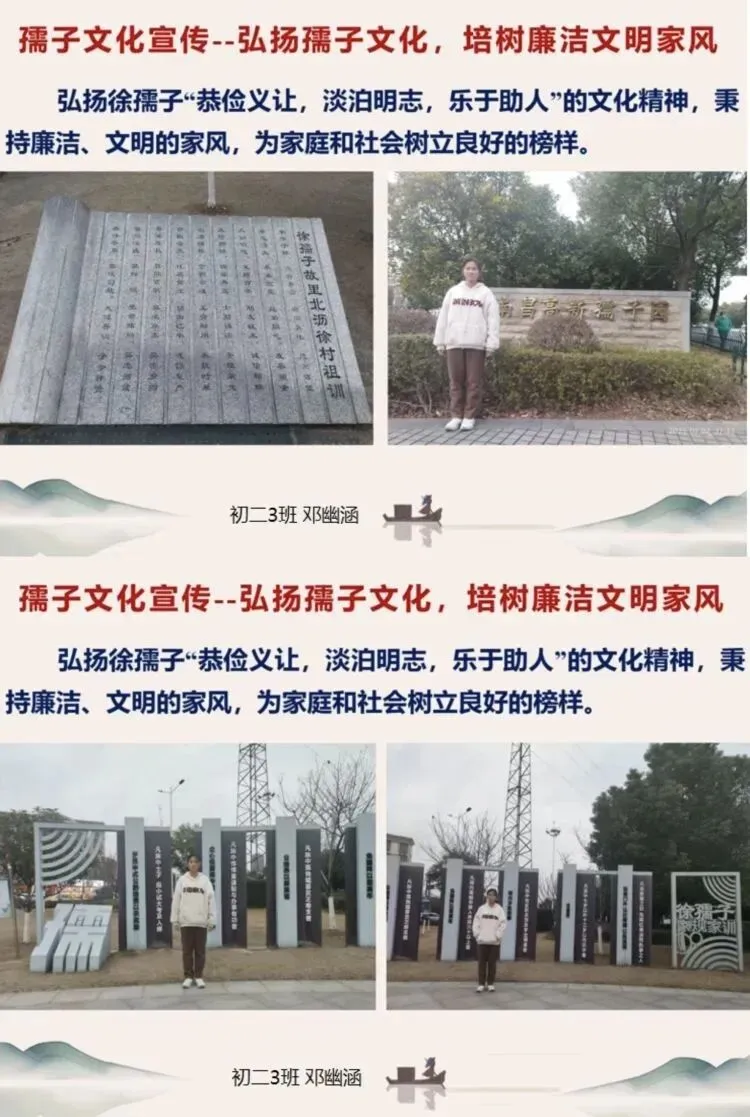 孺子清风传薪火,少年探源续文脉。此次调查探究活动虽落幕,但学子以脚步丈量根脉、用作品定格风骨,让徐孺子“恭俭义让”之德在多元创作中熠熠生辉;当孺子精神与青春朝气相融、传统文脉与时代教育共生,愿少年们内化品德、外化践行,让豫章千年儒风在新时代绽放新辉!