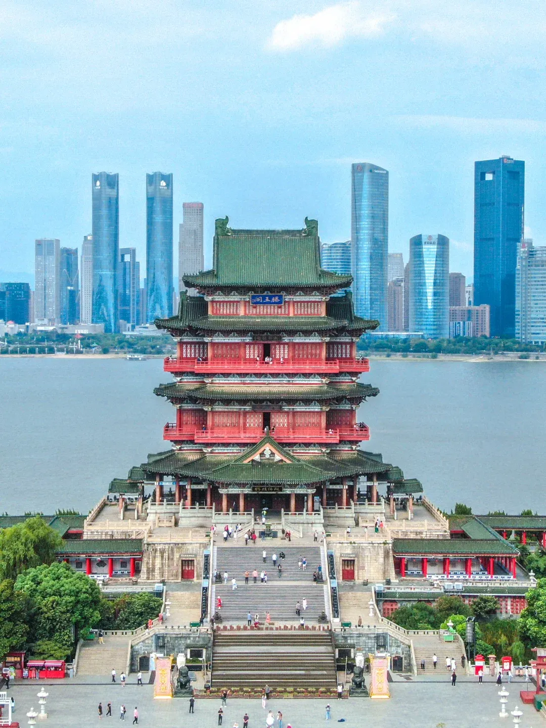 登楼能看江,也能看红谷滩的楼群,历史和现在一眼能装下,合影拉满。