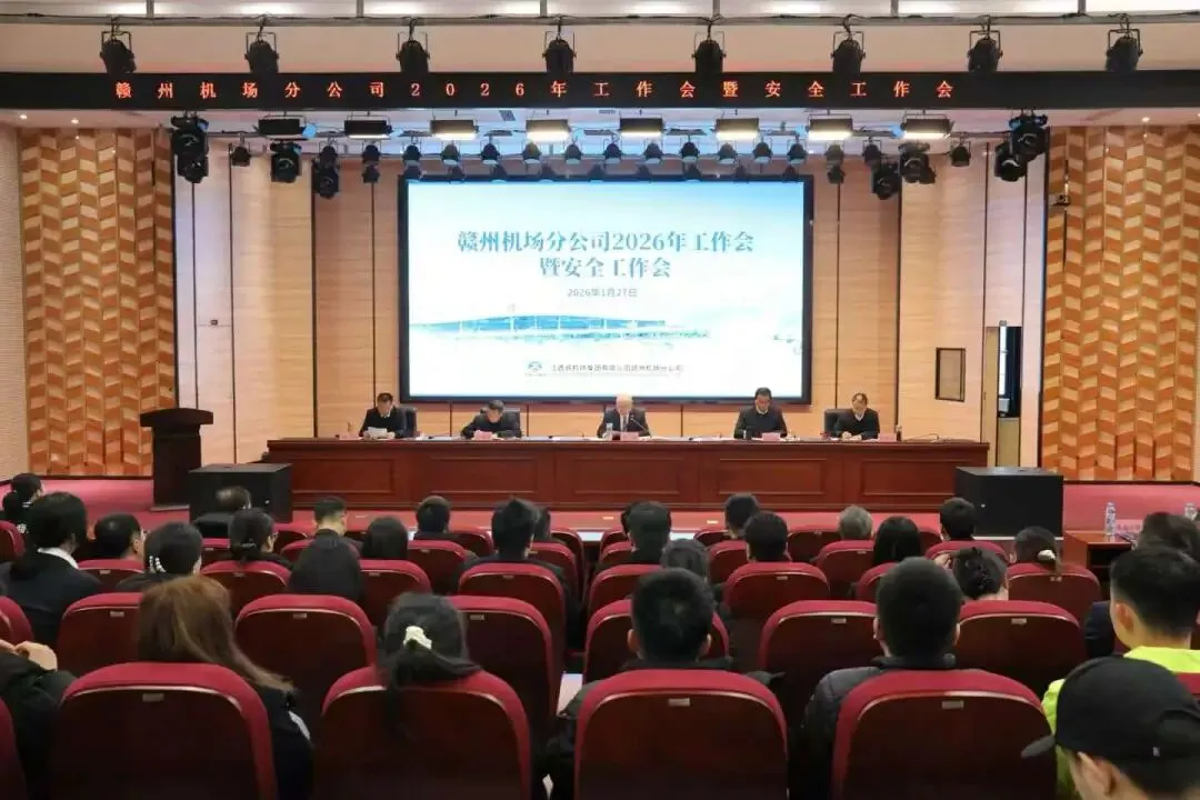 1月27日,赣州机场分公司召开2026年工作会议暨安全工作会议。会议深入学习贯彻党的二十大和二十届历次全会精神,贯彻落实全国民航、首都机场集团和江西机场集团工作会议精神,总结2025年工作,分析“十四五”经验启示和当前面临的形势,统筹谋划“十五五”工作思路,部署2026年重点工作任务。