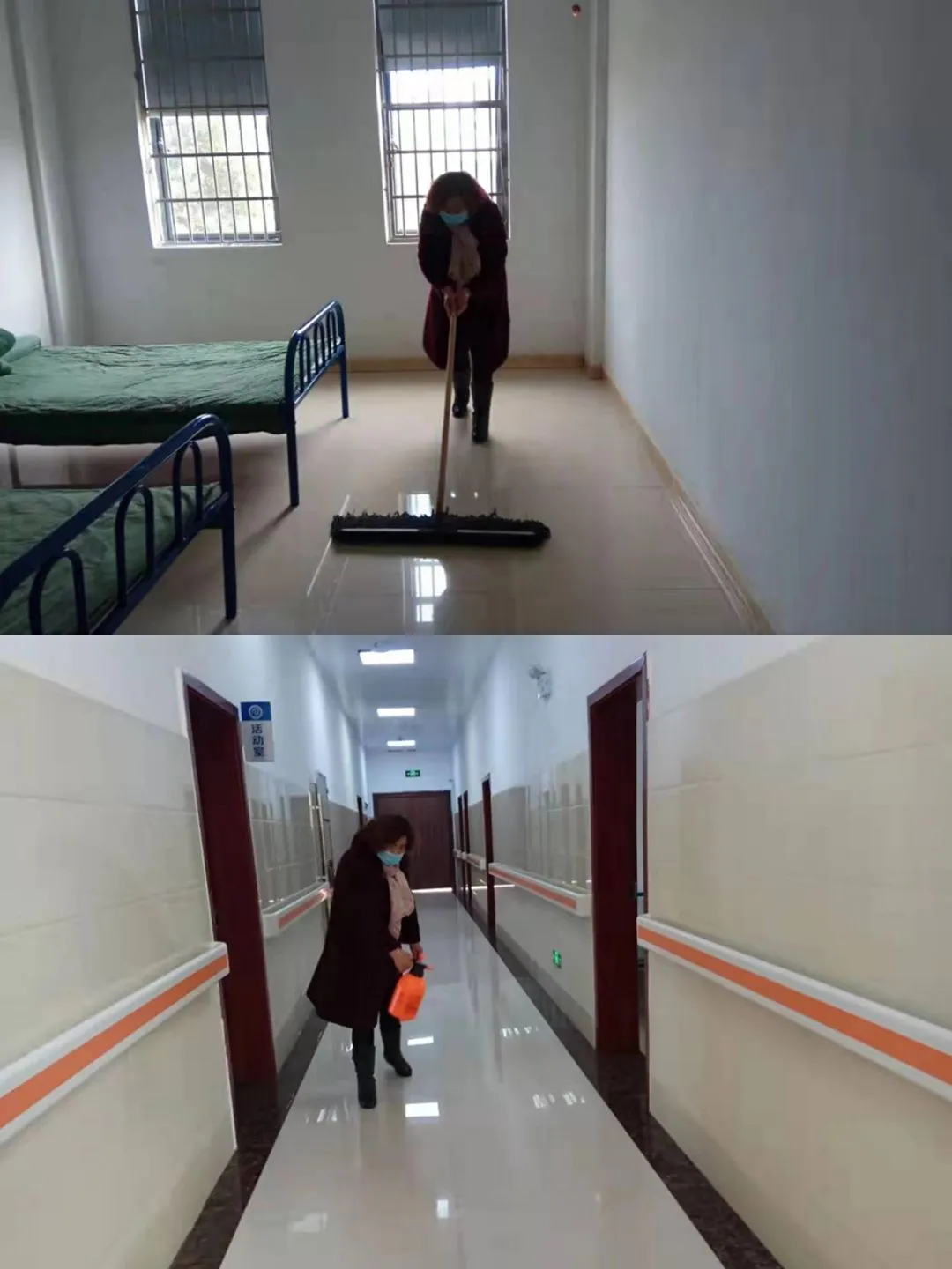每天使用84消毒液对公共区域、办公区域、临时救助区及照料中心进行消毒和打扫,要求物业公司管理人员与站内照料中心负责人签订防控疫情承诺书。另外,还邀请专业人士携带专业工具对救助站办公楼、照料中心、食堂等重要场所进行专业消杀,并加强站内食品安全管理,确保各项防护措施落实到位。同时,提高了对在站滞留人员的巡查频次,及时有效的掌握托养人员身体状况。