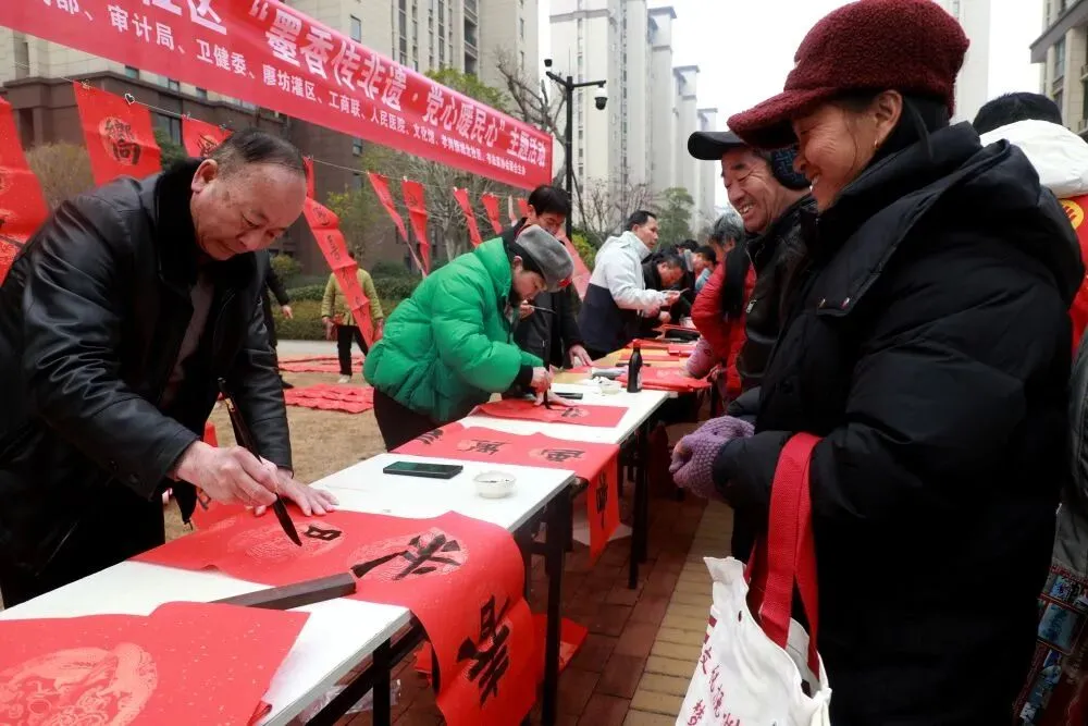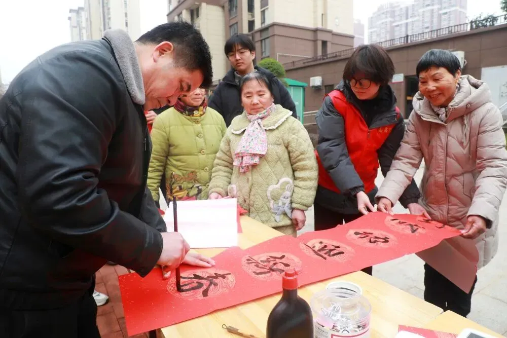 1月23日,江西省抚州市东乡区孝岗镇城北社区联合区委统战部、区审计局、区书法家协会等单位,共同举办“墨香传非遗·党心暖民心——我为文明城市代言”文明实践活动。活动以“居民点单、书法家接单”的形式定制春联派送,将非遗文化与文明新风送入居民生活。