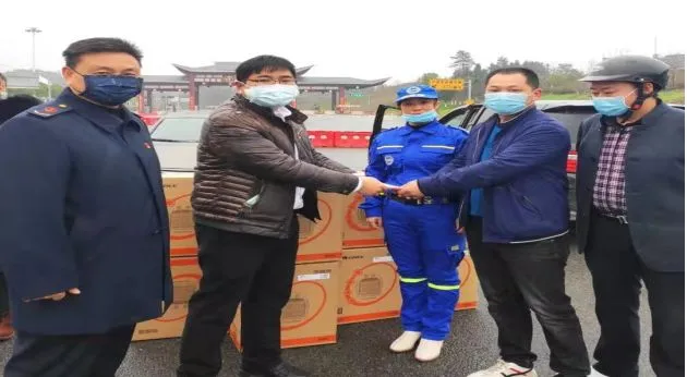 乐安县副食品百货行业协会会长文小毛带领协会成员来到高速路口,对正在防控疫情一线的辛勤工作的“战士”们送上价值2万多元的方便面、饮料、奶、饼干、面包、抽纸、矿泉水等进行慰问!。