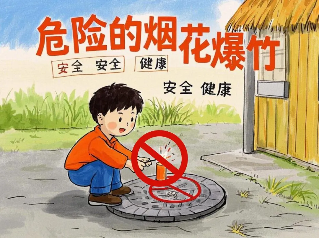 2.告知孩子燃放烟花爆竹的危险性,远离易燃可燃物,严禁在室内、草坪、树林等区域燃放,也勿将点燃的鞭炮投放到化粪池、污水井、窖井池等危险地方。