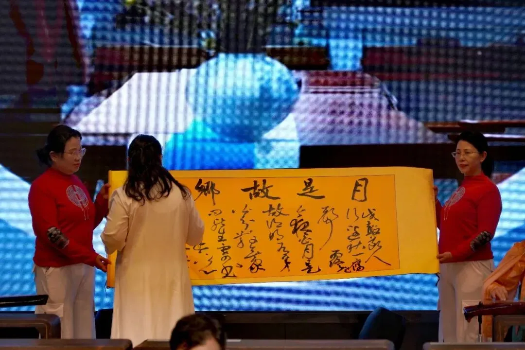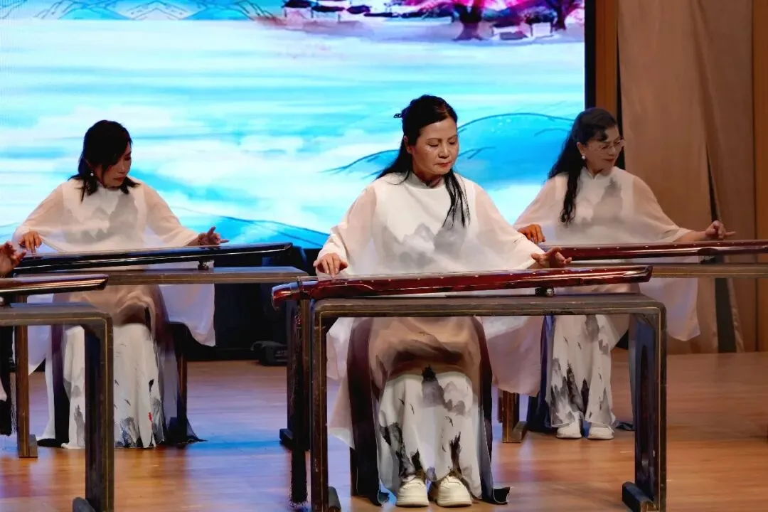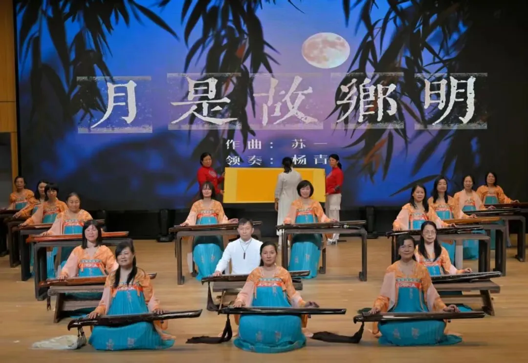 随后,上犹琴友及女子书法协会会员展示《月是故乡明》,清辉洒满琴台,照亮了每个人心中对故乡的温暖牵挂与跨越山海的思念。